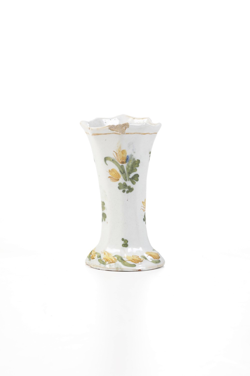 Maiolica. Marca: assente. Altezza cm 16,5. Conservazione: sbeccatura al bordo superiore.