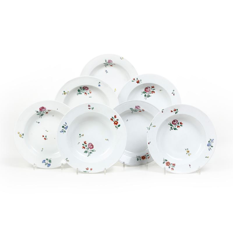 Sette piatti fondi. Doccia, Manifattura Ginori, 1770 circa.