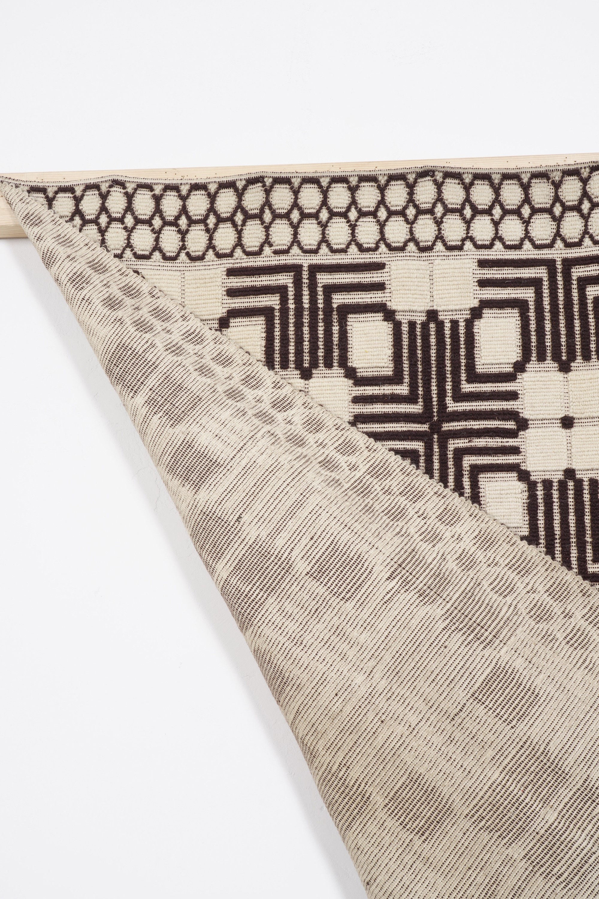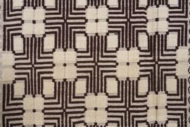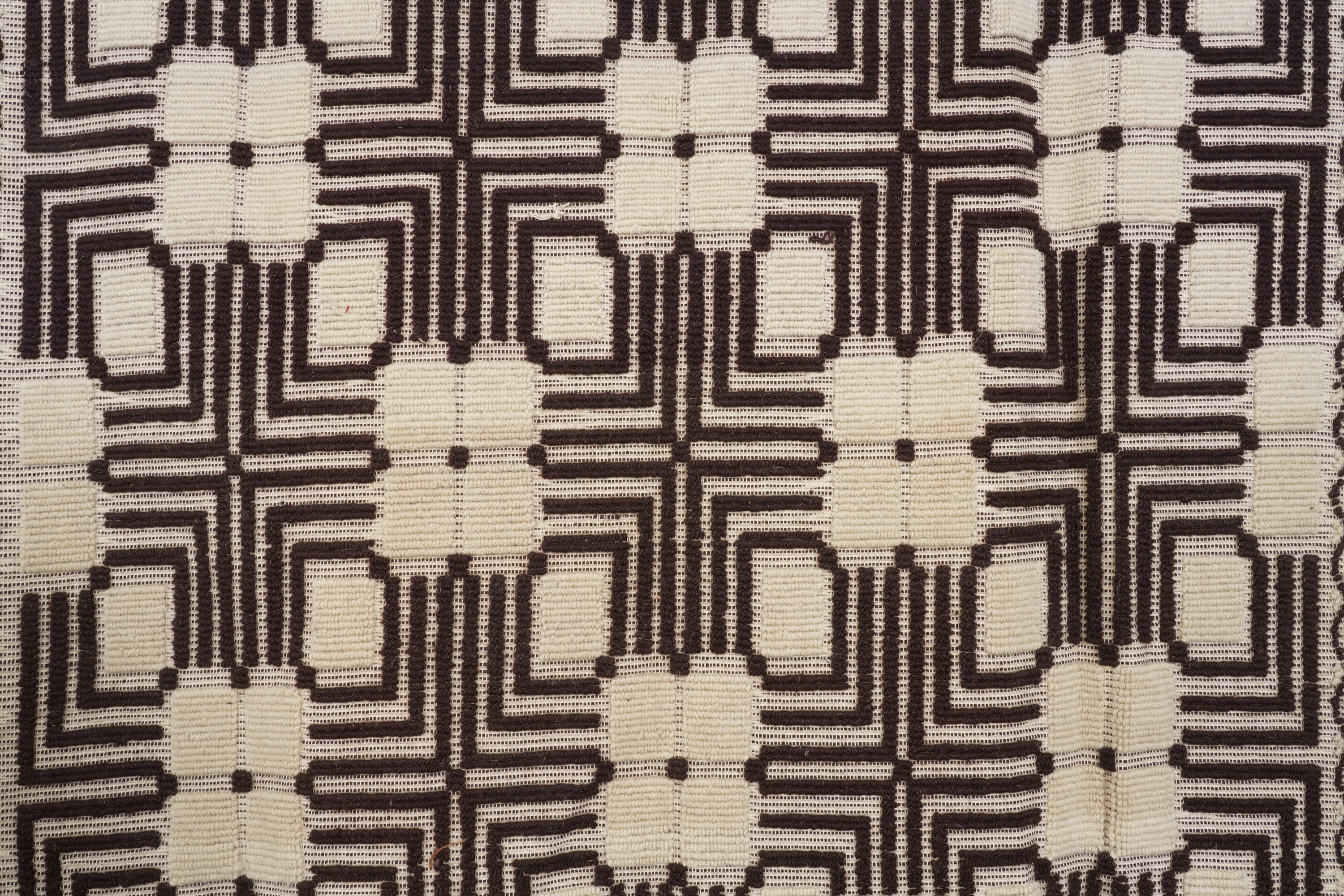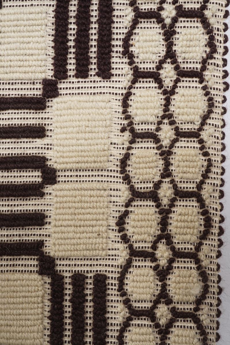 campo bianco con decoro geometrico marrone.