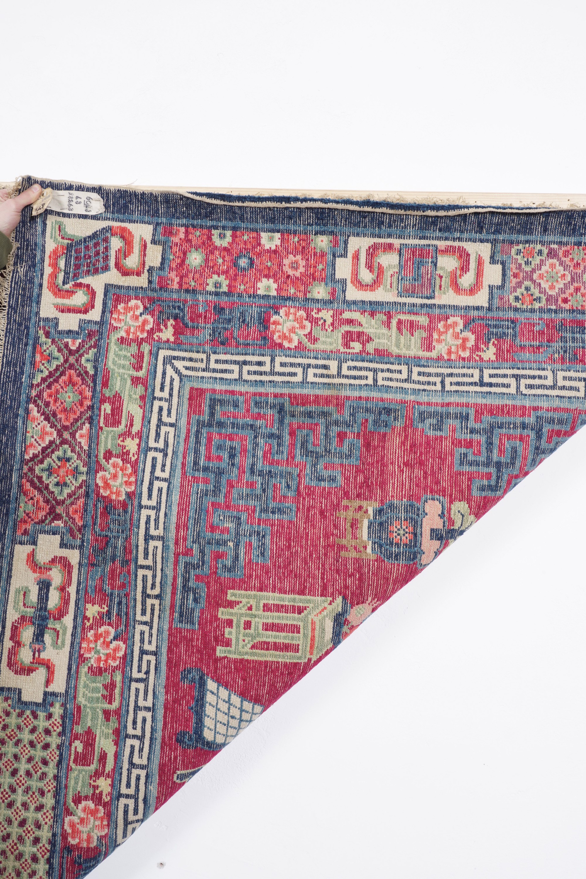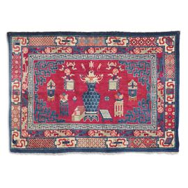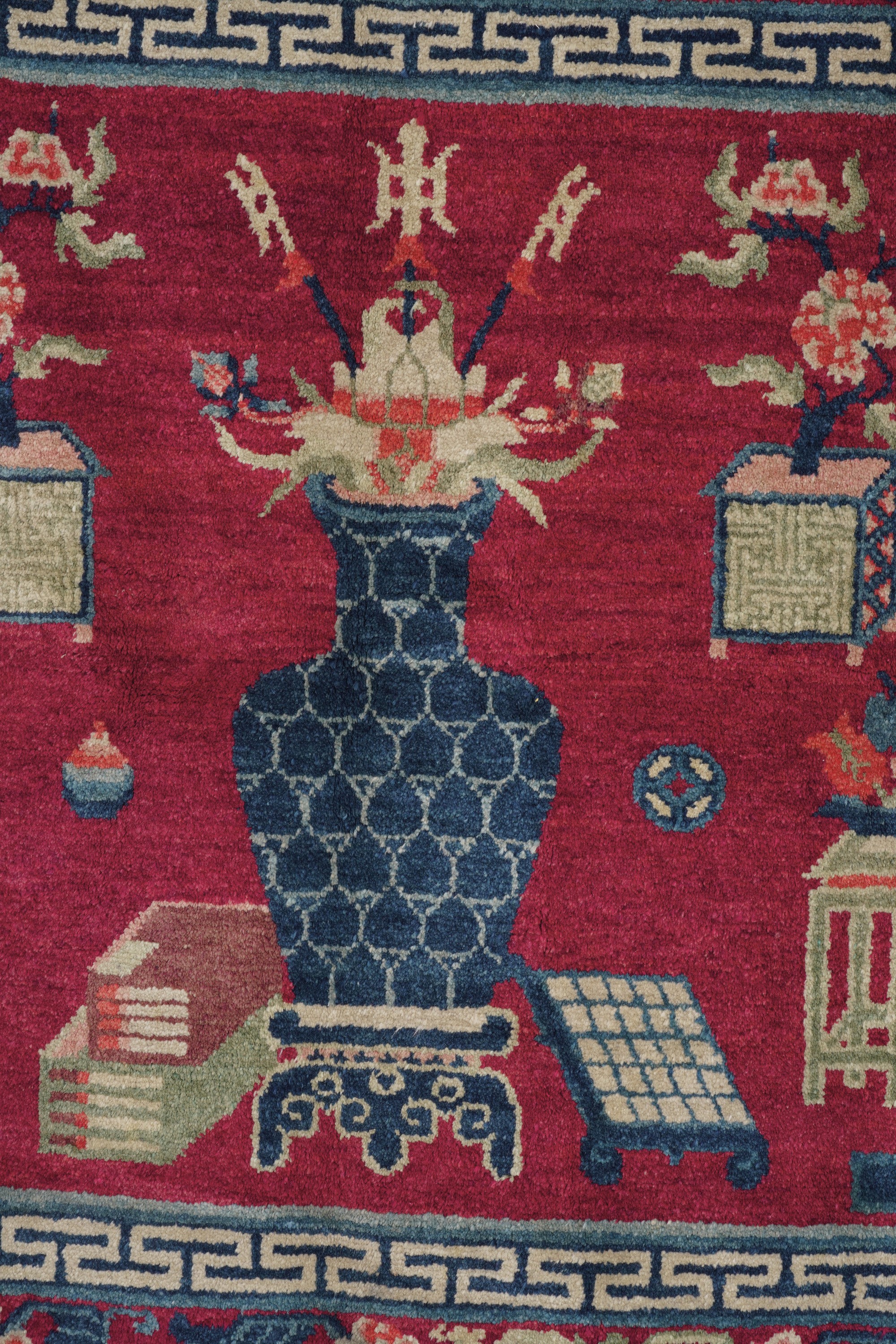 particolare il campo rosso con vaso centrale e simboli vari. Nella bordura secondaria fiori e pipistrelli "bienfu" simbolo di fortuna e felicità