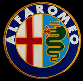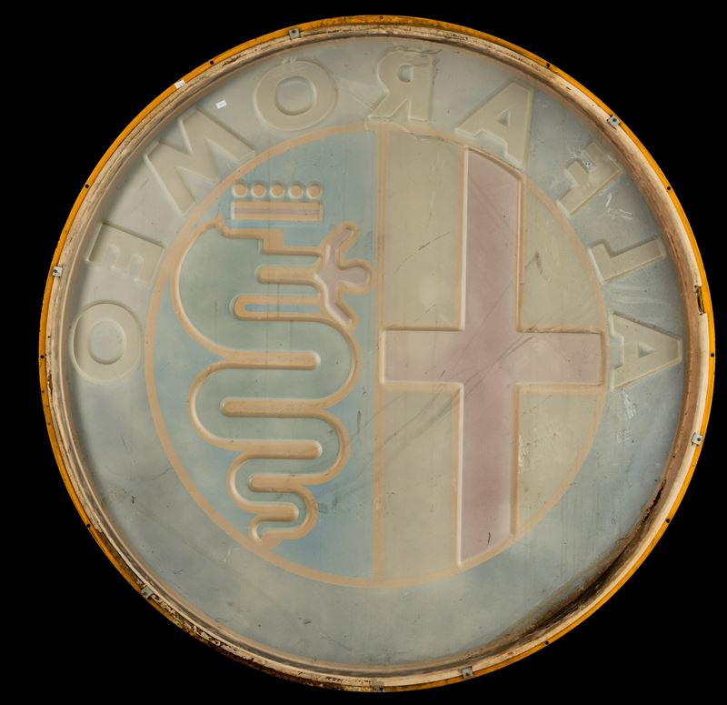 Insegna termoformata a rilievo in plastica con telaio in metallo, 1950 ca. Cm diametro 150. Segni del tempo.