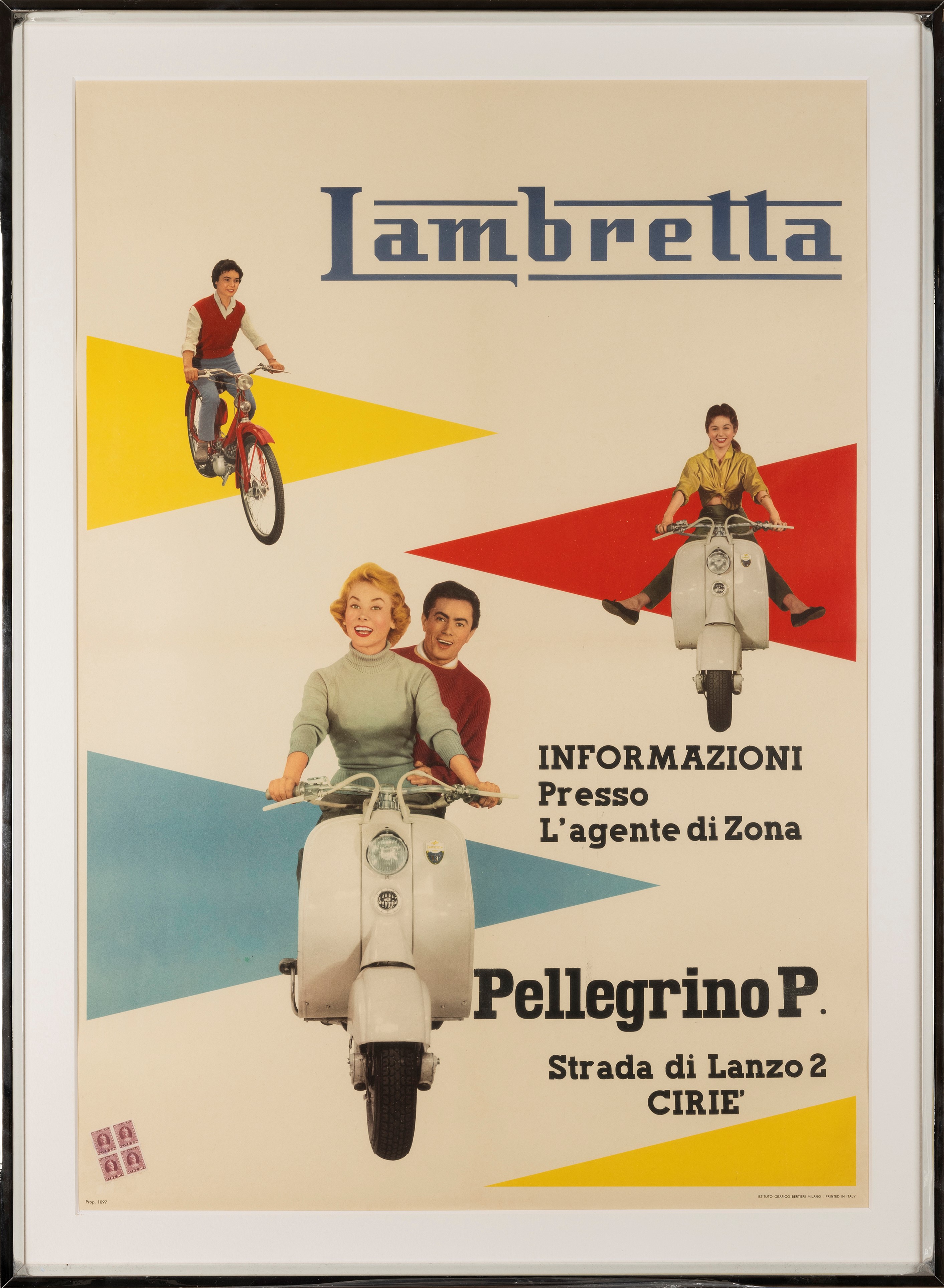 Affisso litografico, 1957. Impresso da Istituto Grafico Bertieri - Milano. Cm 112,5 x 82,5 in cornice. Qualità A-
