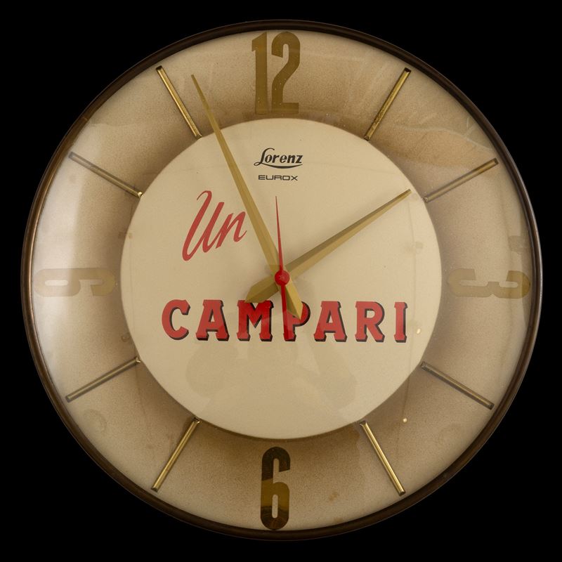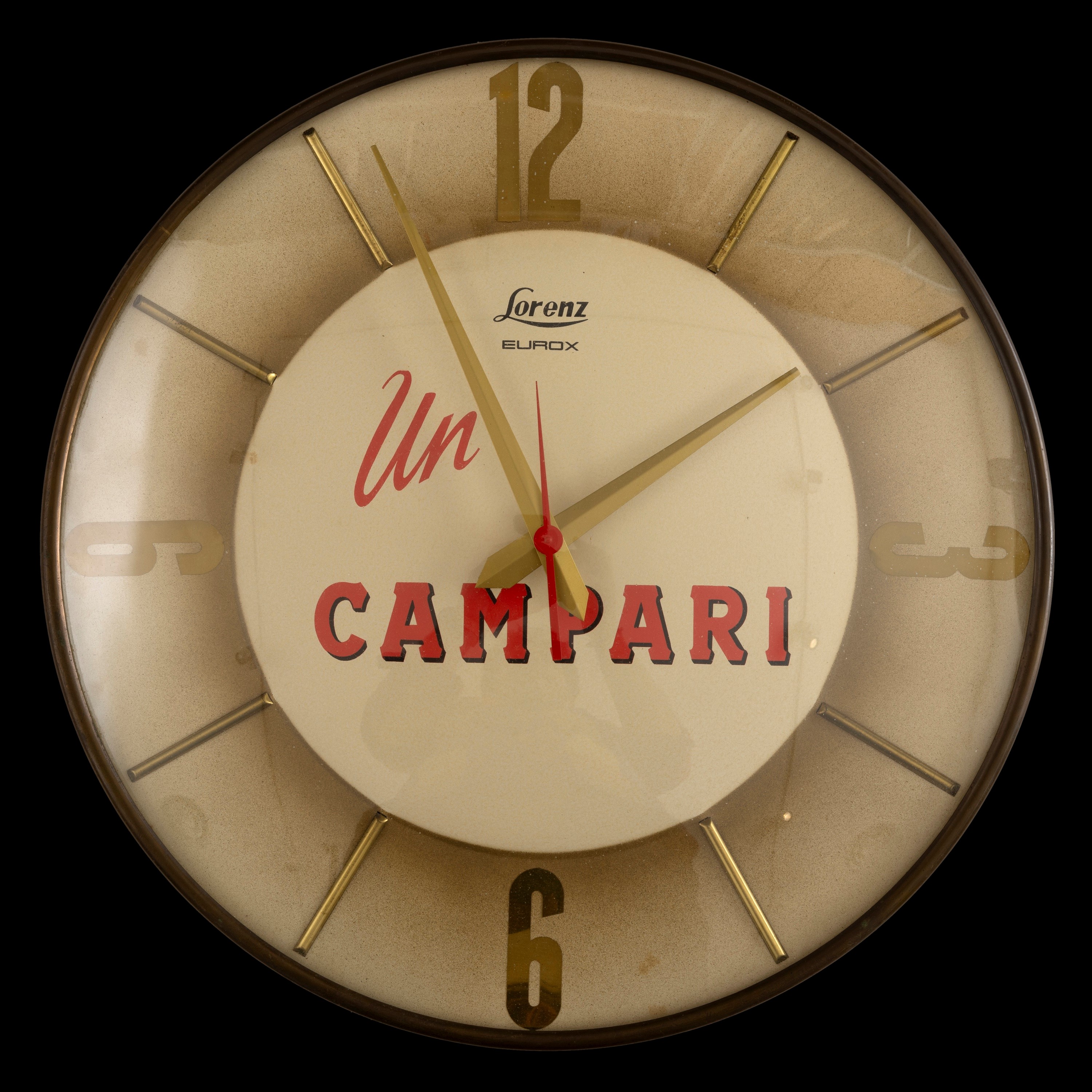 Struttura in metallo battuto con etichetta originale, 1960 ca. Vetro originale bombato. Meccanismo Lorenz, funzionate. Cm 39 diametro. Ottime condizioni.