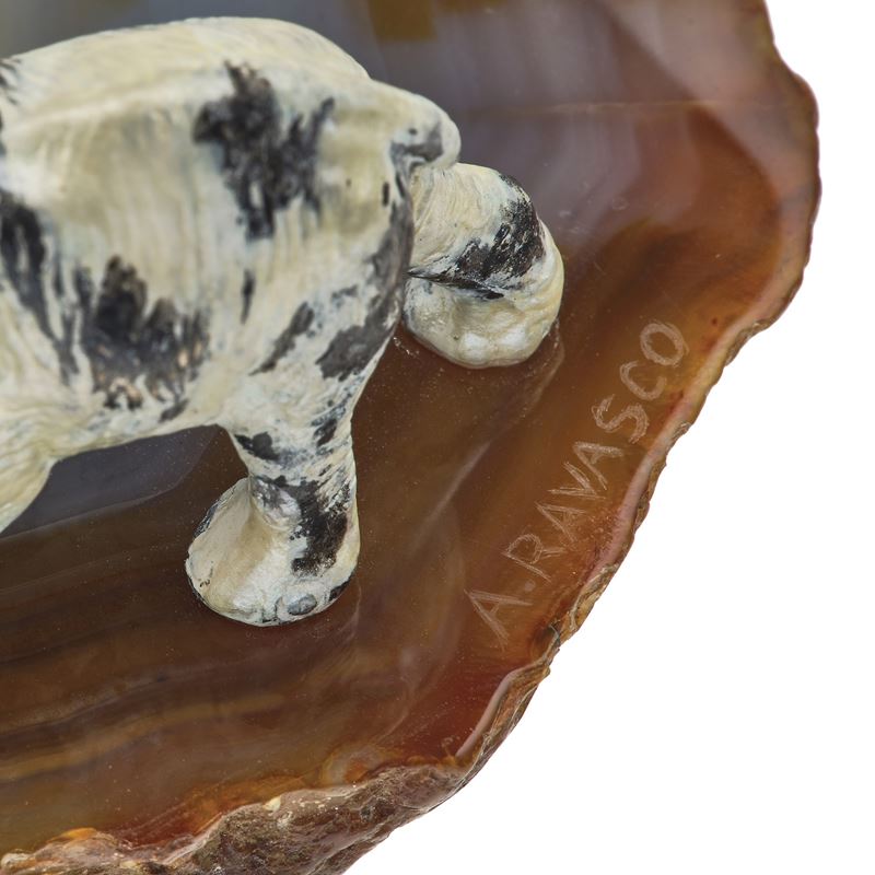 Agate holder with pearl, silver and enamel elephant. Signed Alfredo Ravasco