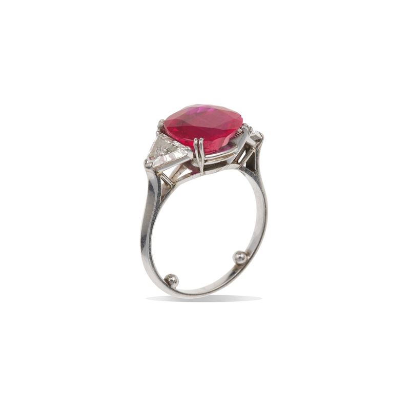 Anello con rubino Burma di ct 3.19, nessuna indicazione di riscaldamento, e due diamanti