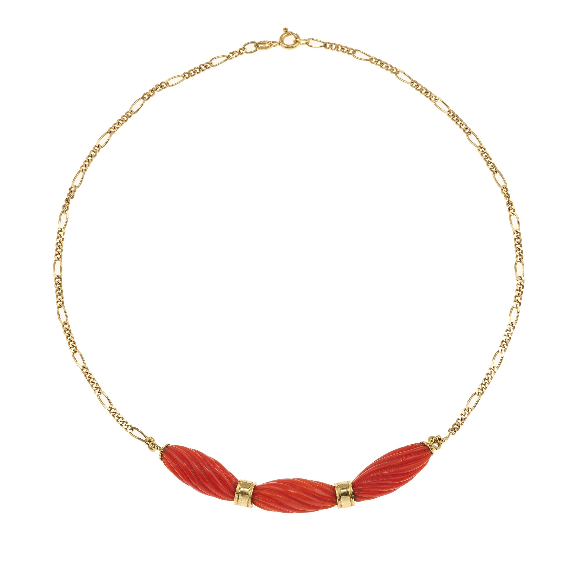 Carved coral and gold necklace