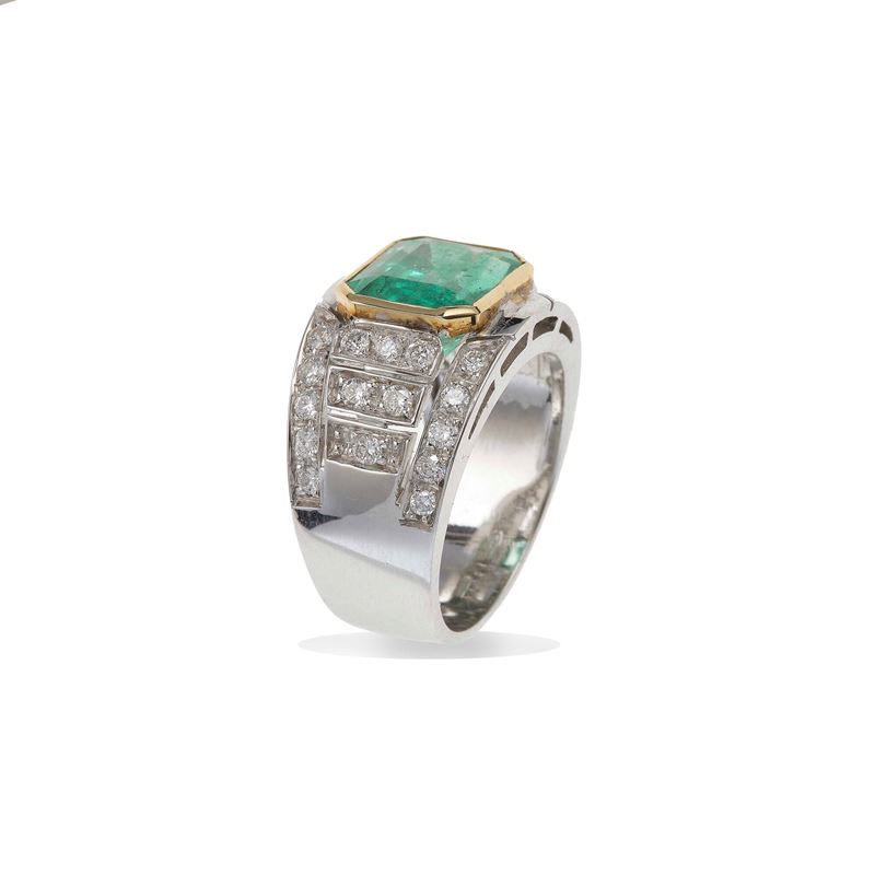 Colombia emerald and diamond ring. Gemmological Report CISGEM n. 29524