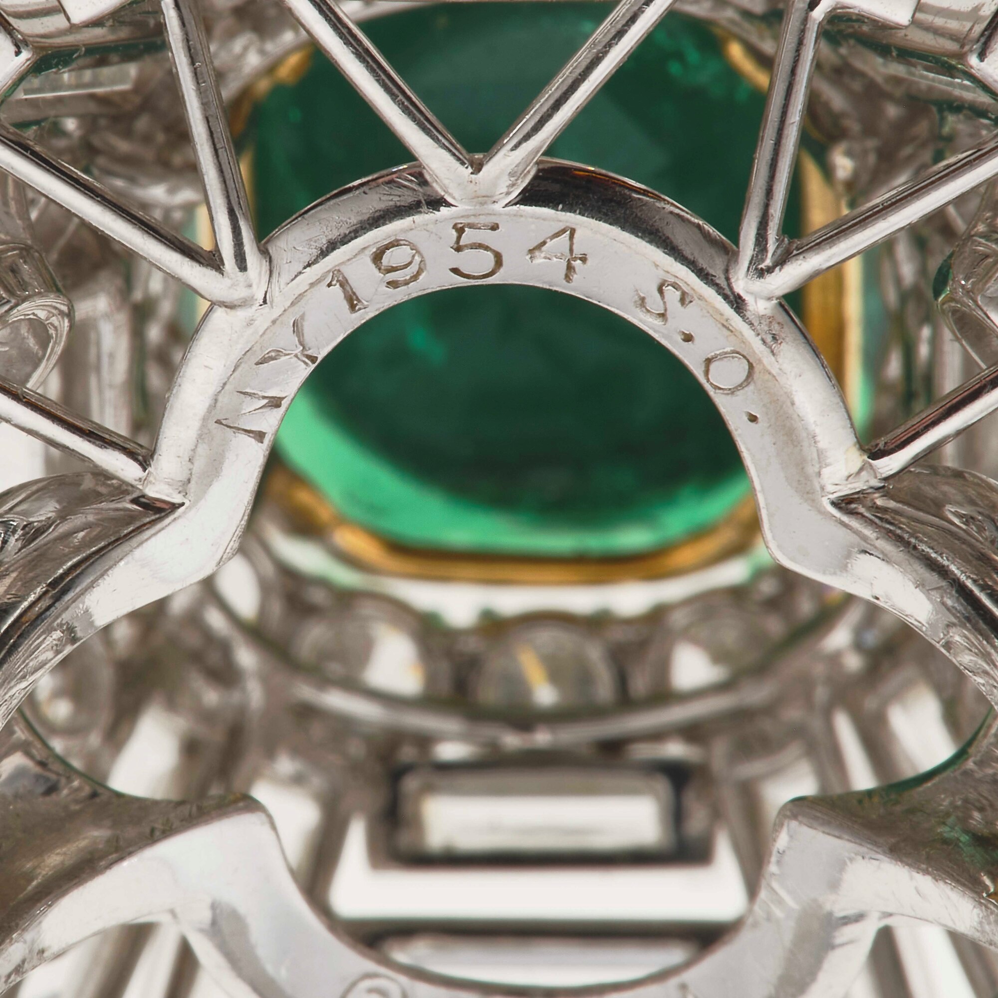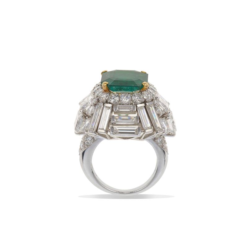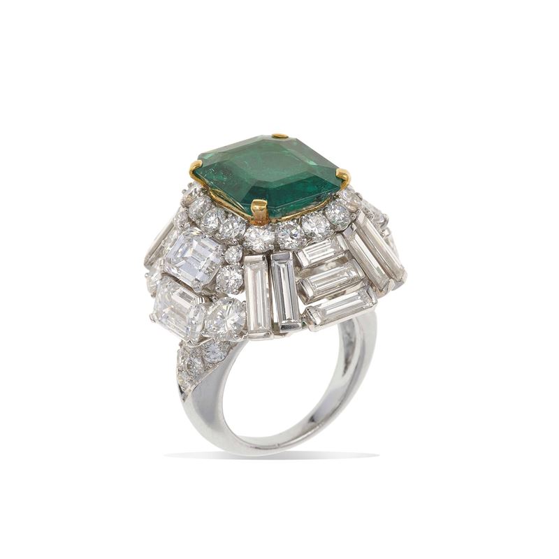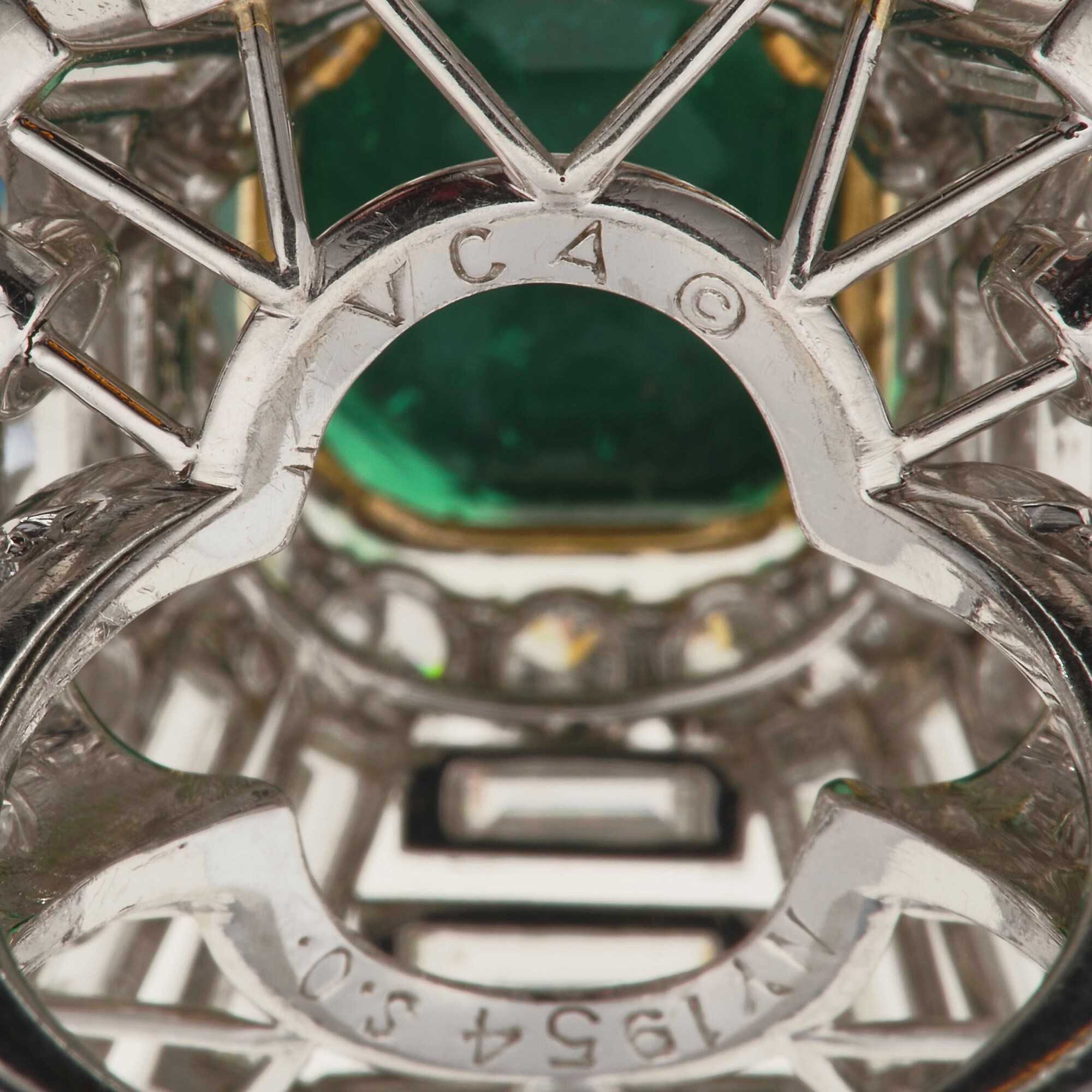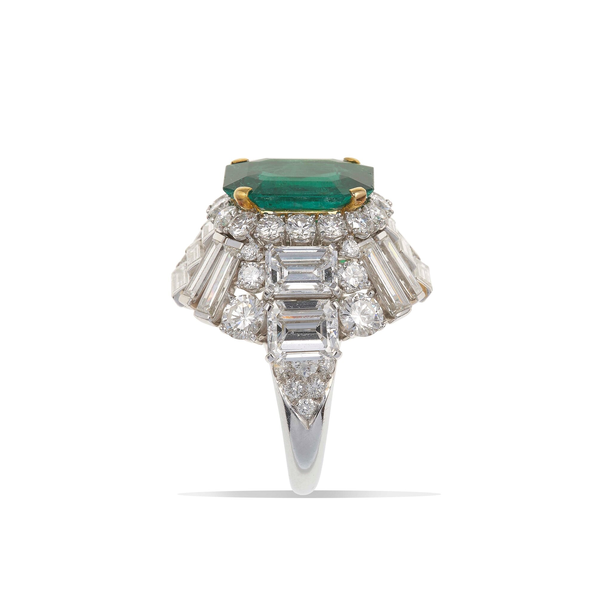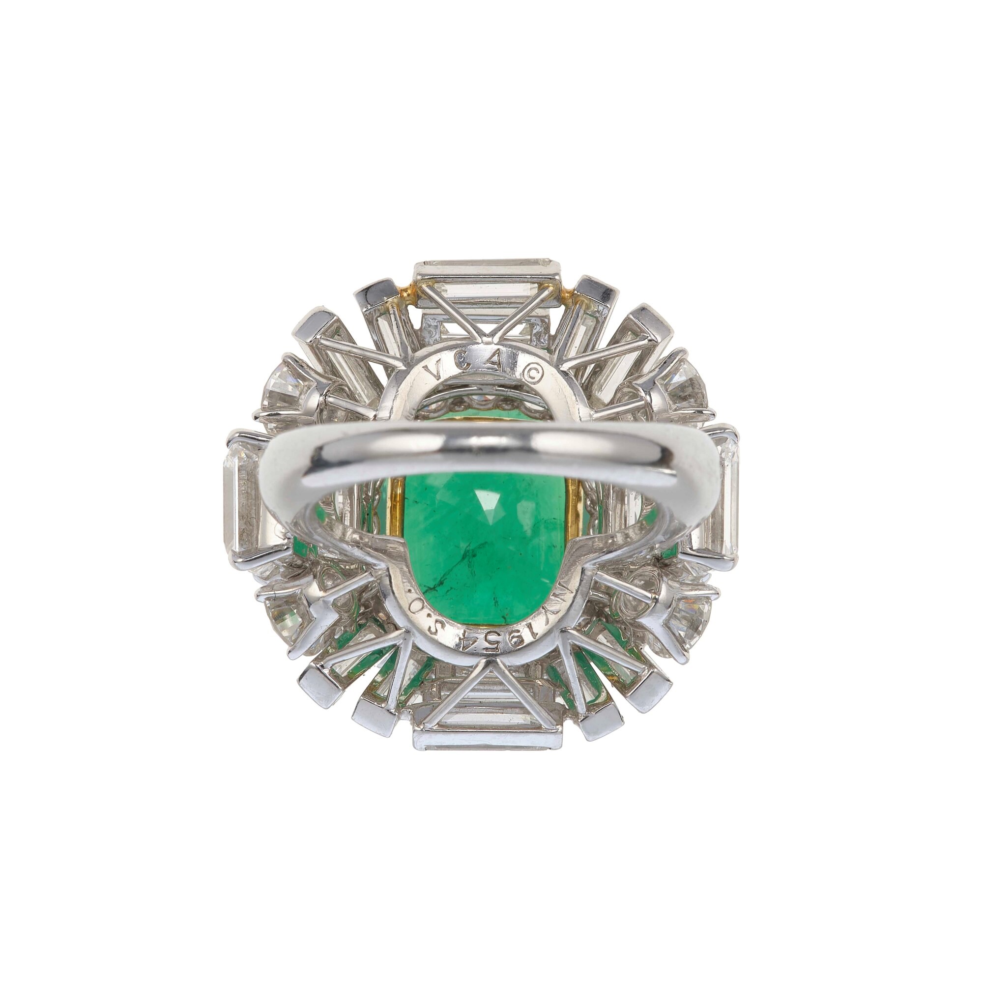 Colombia emerald, diamond, platinum and gold ring. Signed Van Cleef & Arpels. Gemmological Report SSEF Basel