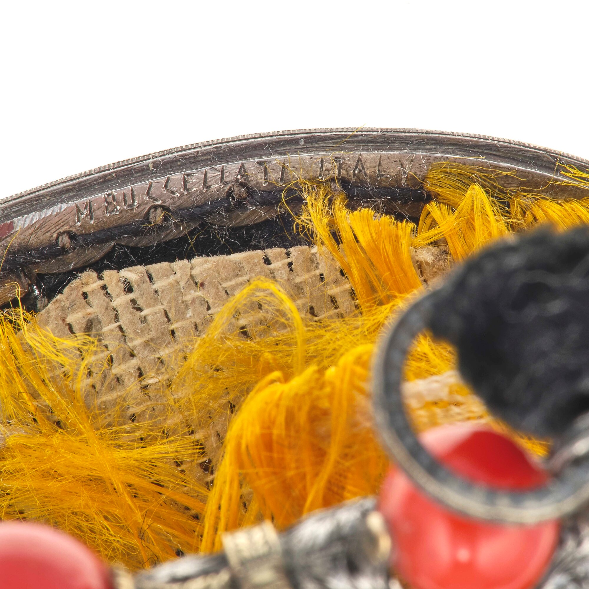 Coral, silver and velvet evening bag. Signed M. Buccellati. Small damage