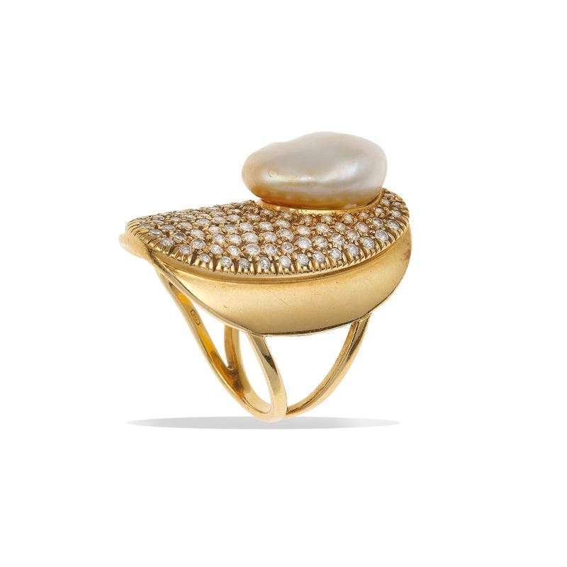 Cultured pearl, diamond and gold ring. Costantino Repossi
