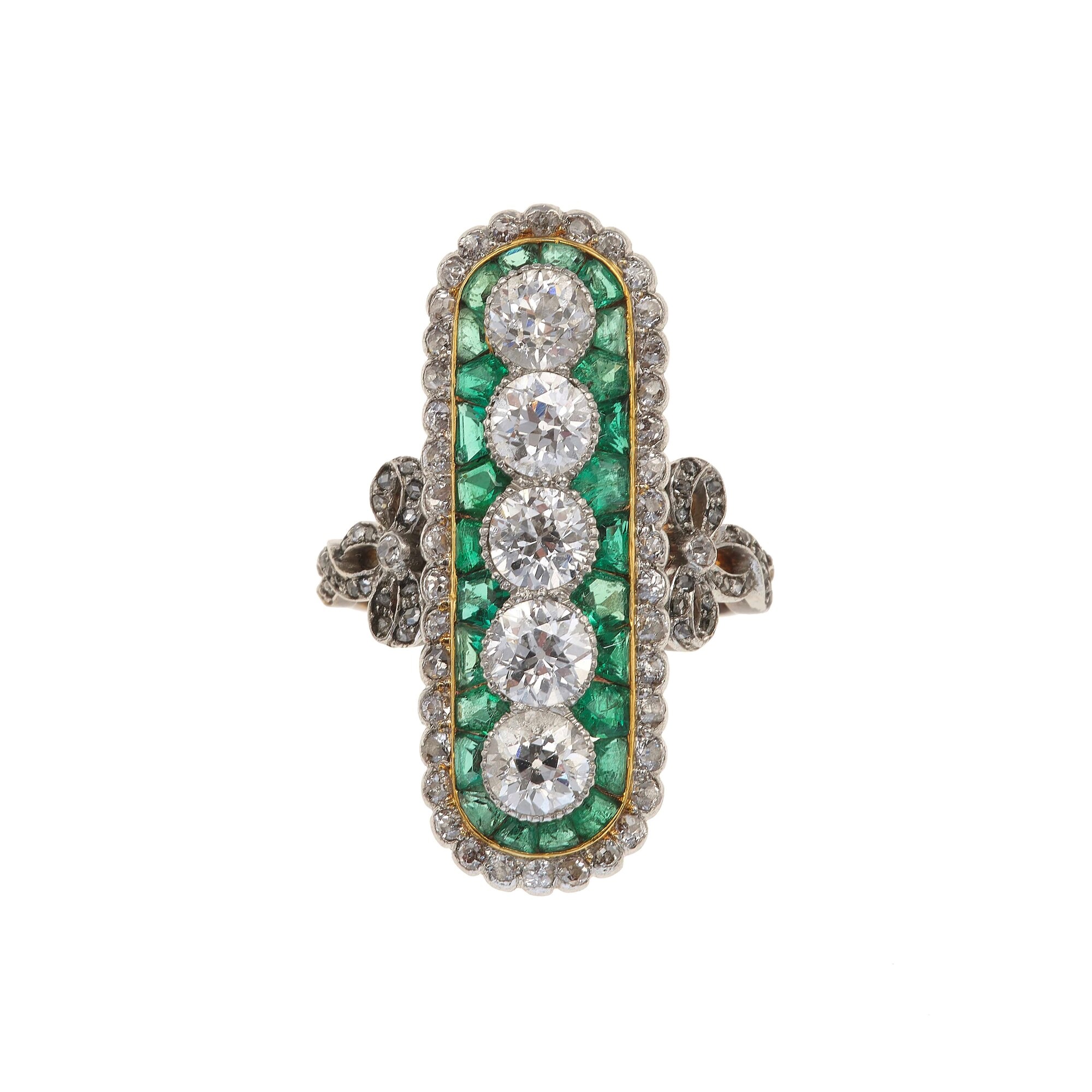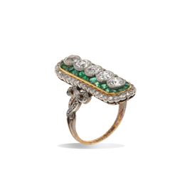 Diamond, emerald, gold and silver ring