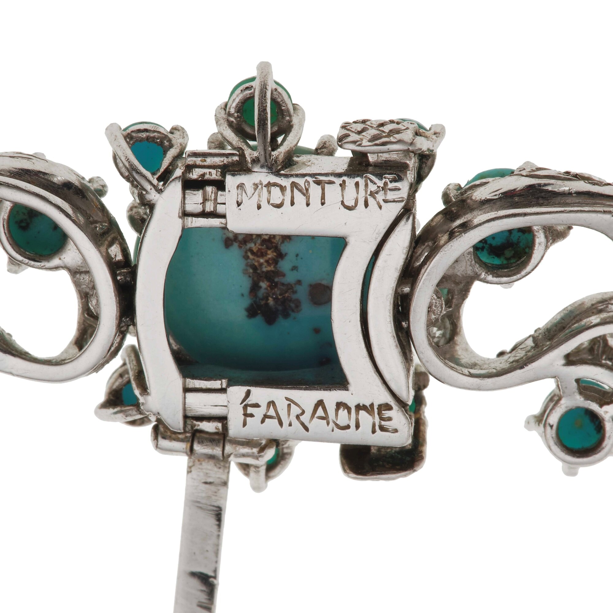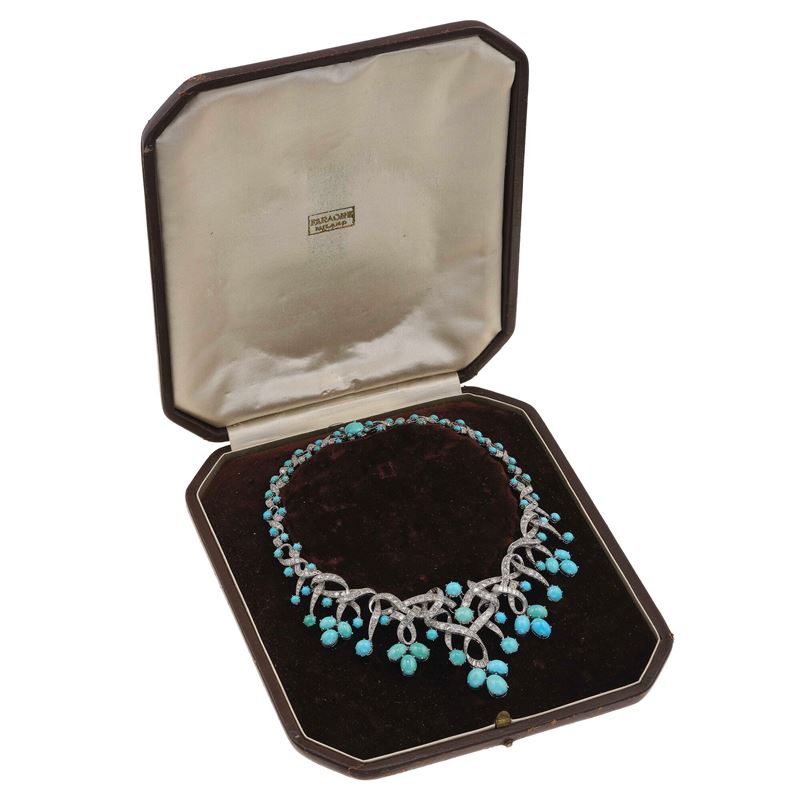 Diamond, turquoise and gold necklace. Signed Monture Faraone. Fitted case