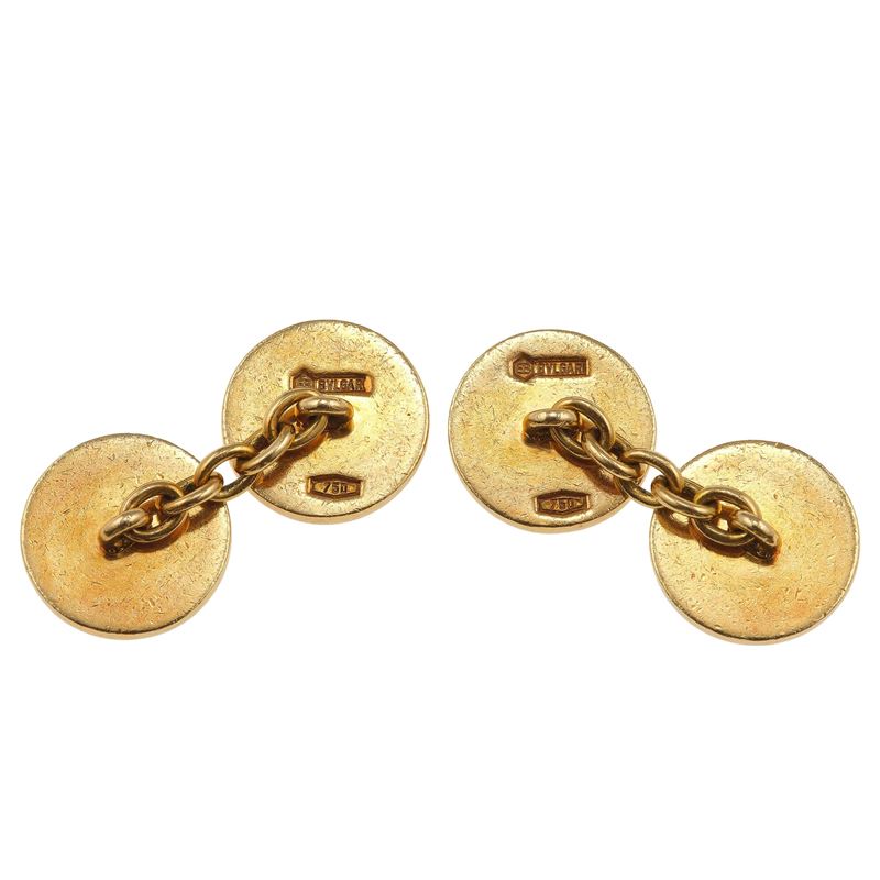 Pair of enamel and gold cufflinks. Signed Bulgari