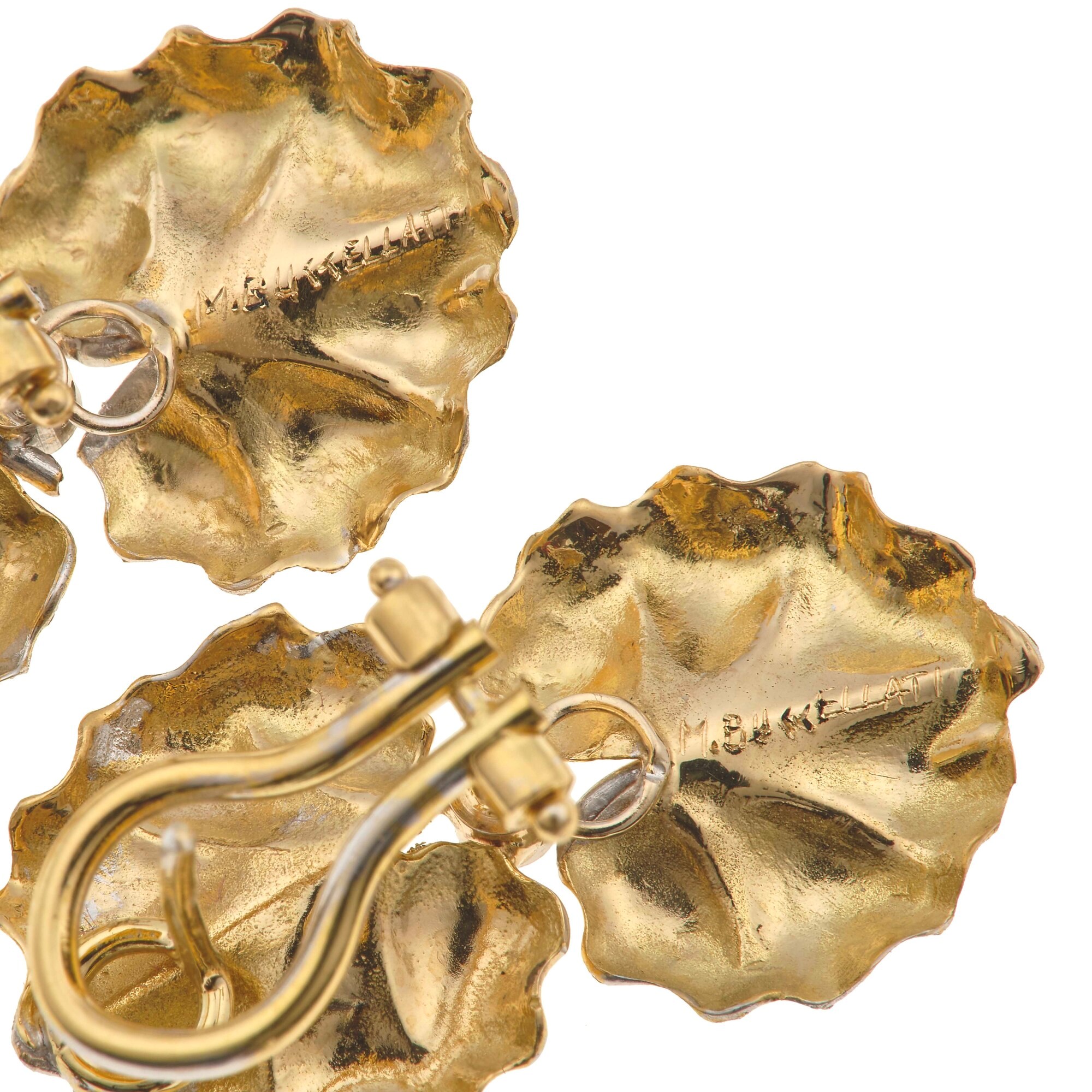 Pair of gold, diamond and silver earrings. Signed M. Buccellati