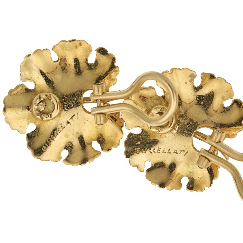 Pair of gold "leaf" earrings. Signed Buccellati