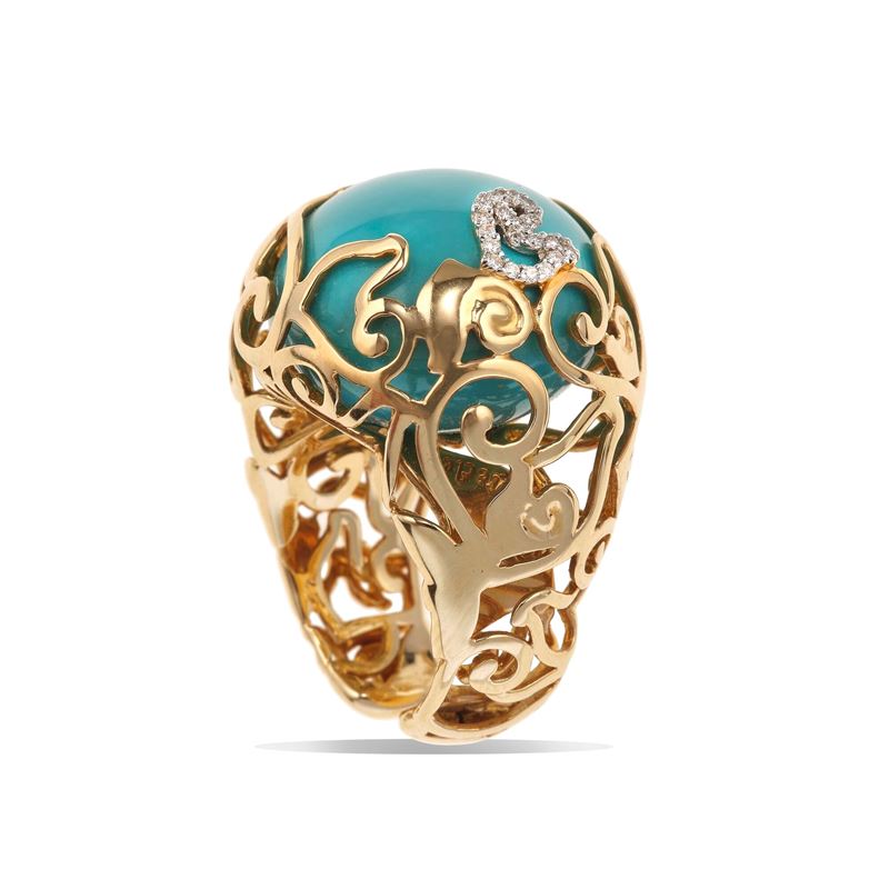 Paste, diamond and gold ring. Signed Chantecler. Fitted case