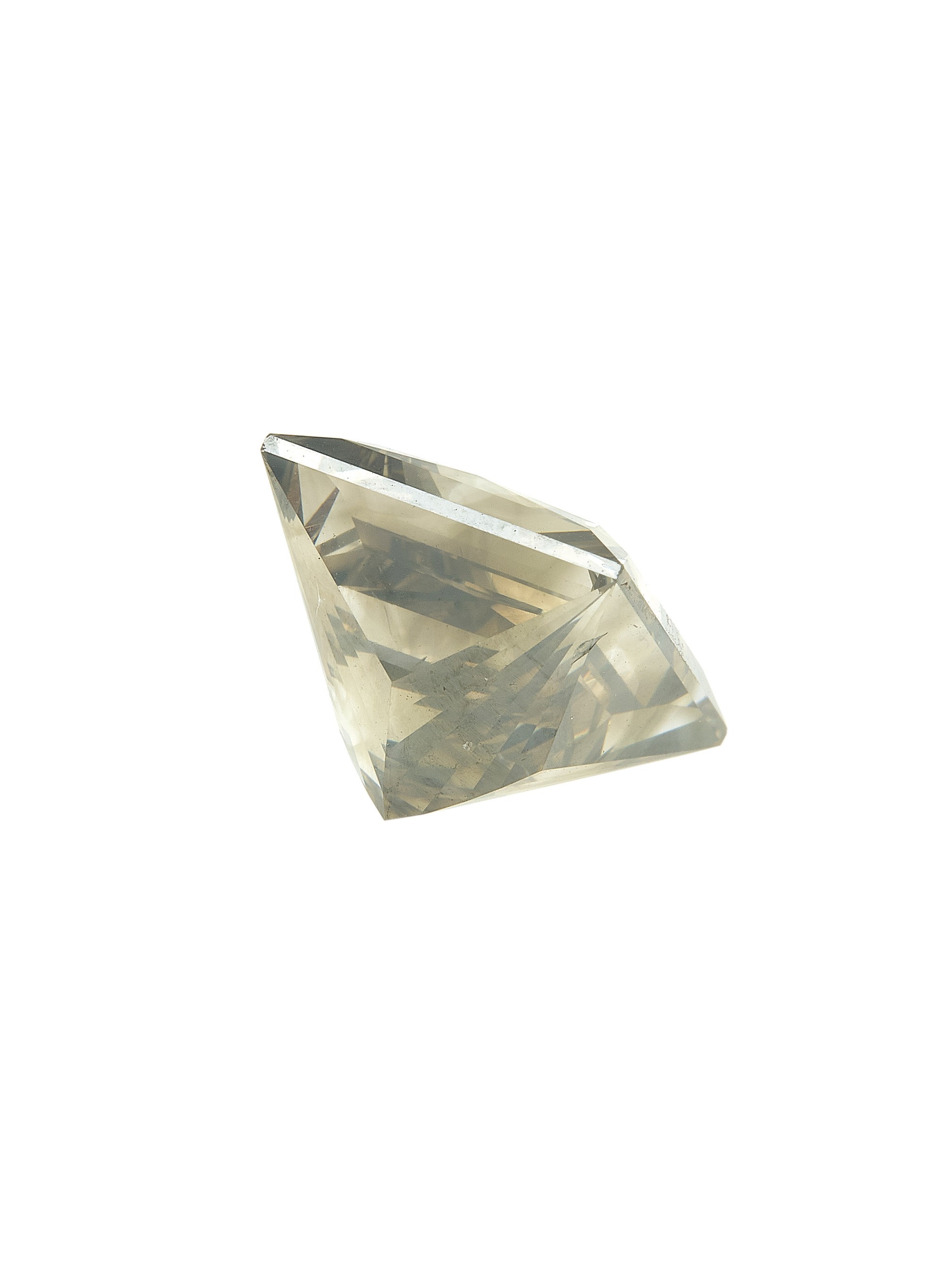 Rectangular faceted and step-cut diamond weighing 5.11, fabcy greenish brown, clarity SI2, fluorescence UV medium. Gemmological Report CISGEM n. 4698/AAB