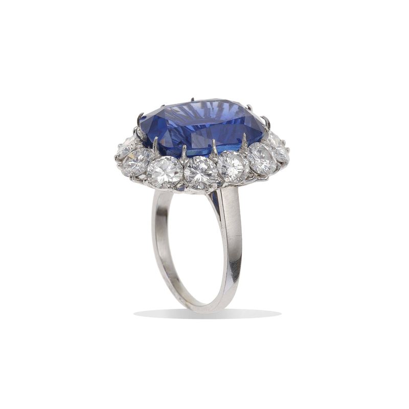 Sri Lanka sapphire weighing 14.62 carats and diamond ring. Gemmological Report R.A.G. Torino n. C25013mn