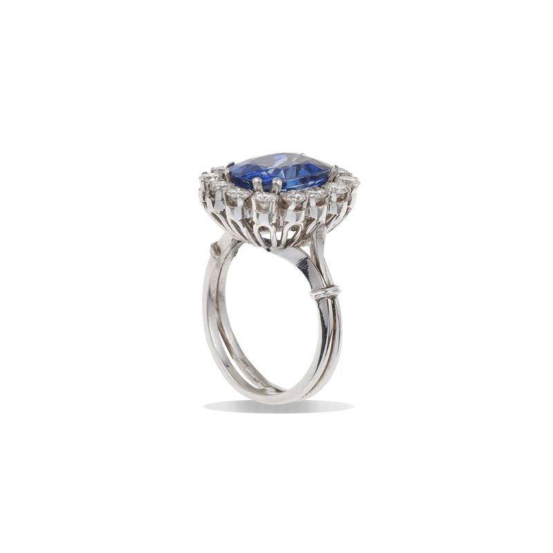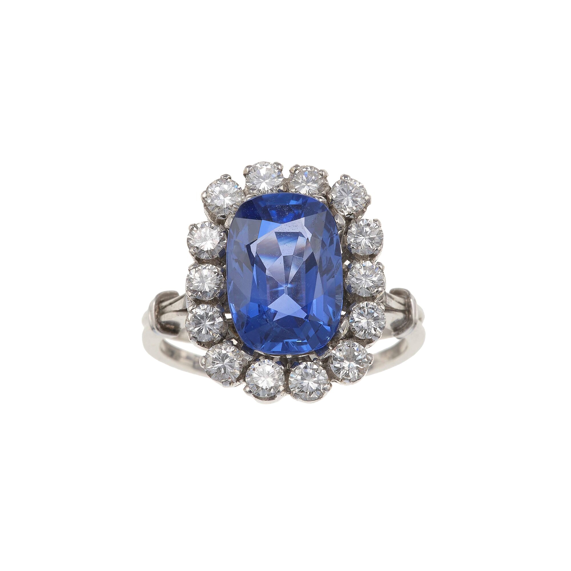 Sri Lanka sapphire weighing 5.06 carats and diamond ring. Gemmological Report R.A.G. Torino n. C25014mn