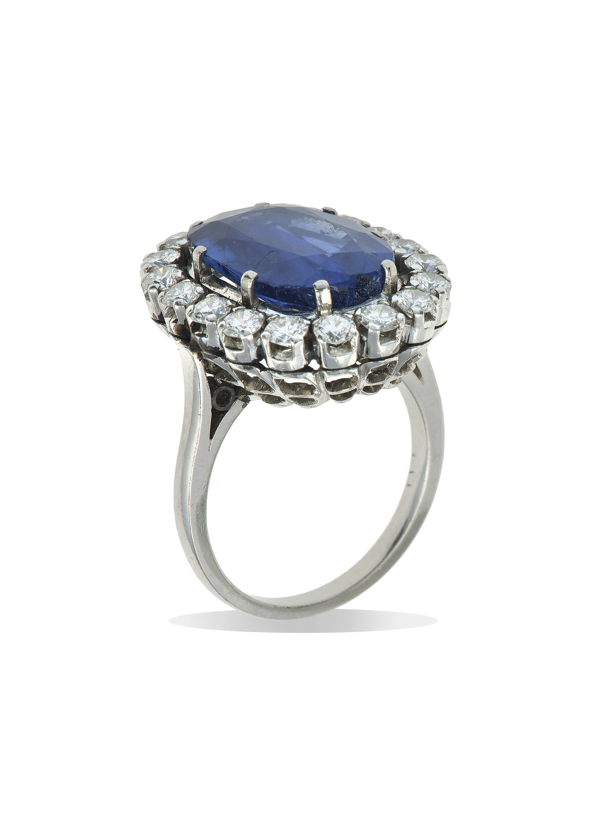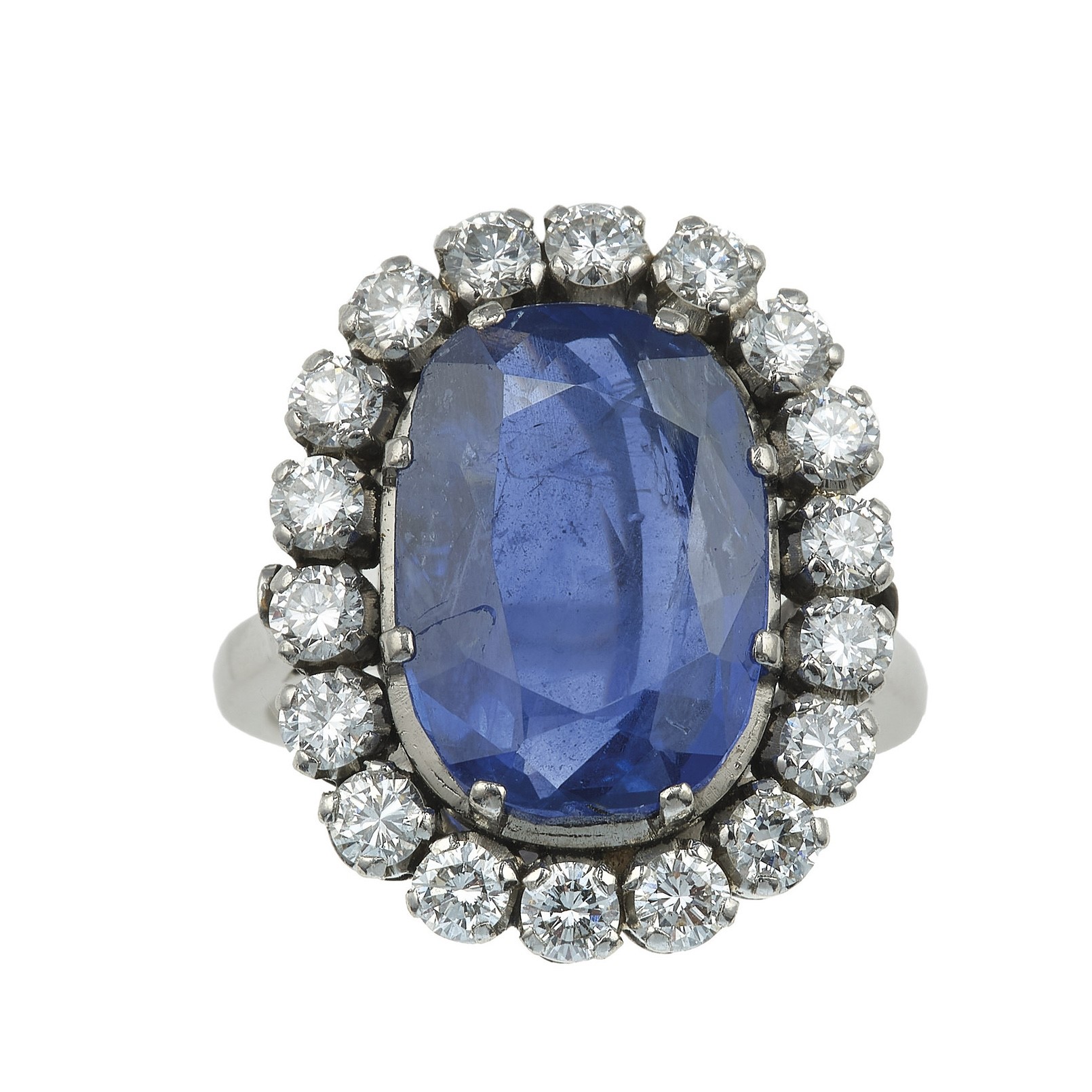 Sri Lanka sapphire weighing approximately 7.20 carats and diamond cluster ring