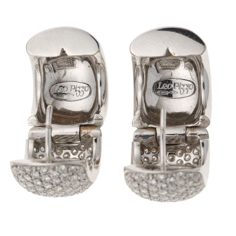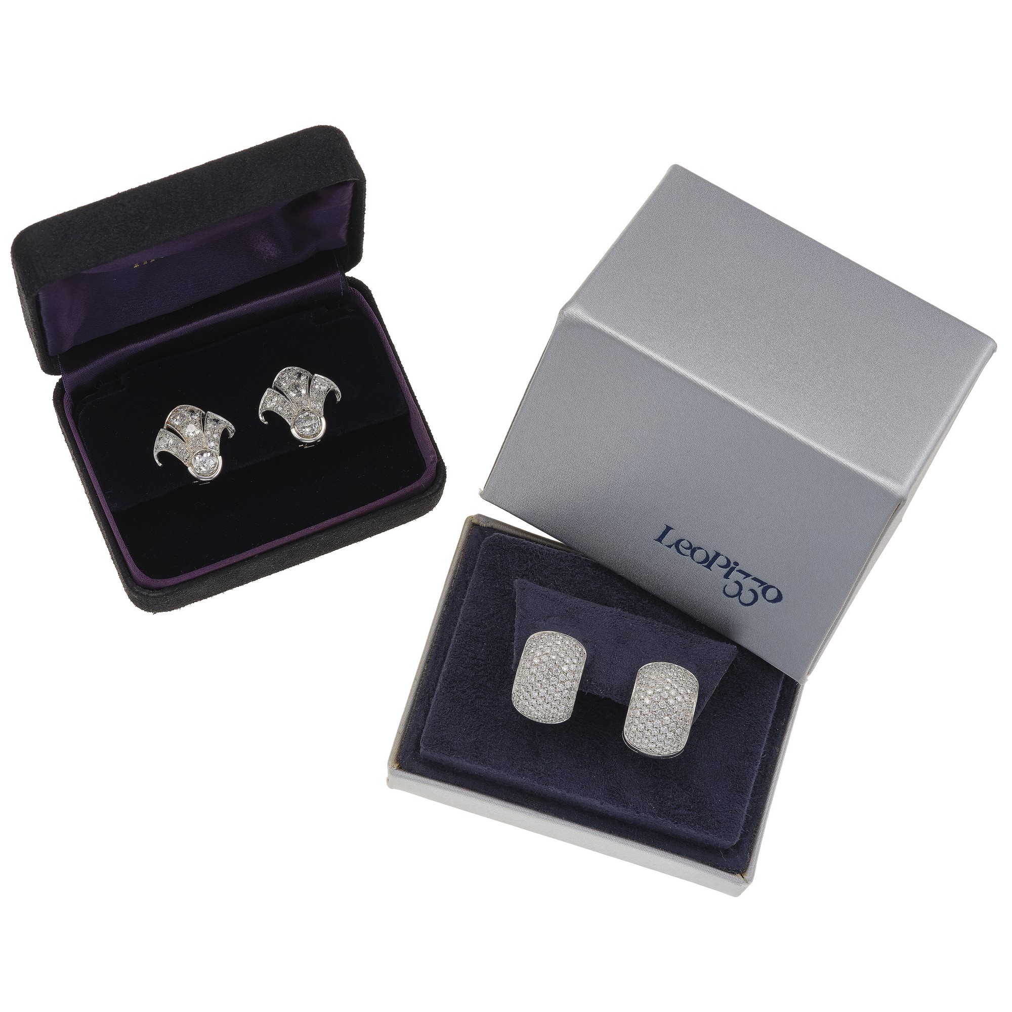 Two pair of diamond and gold earrings. One signed Leo Pizzo, fitted case