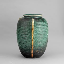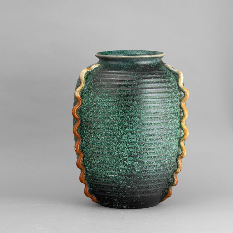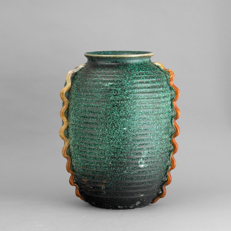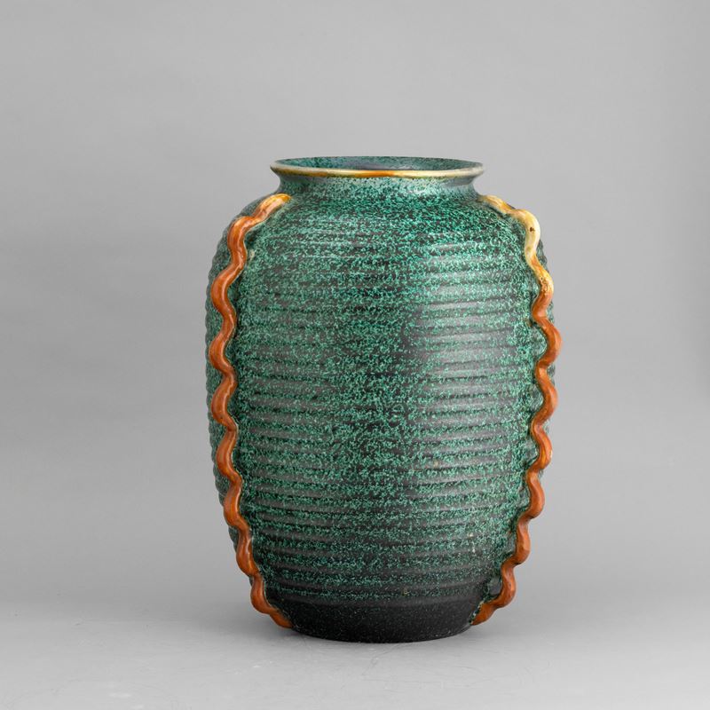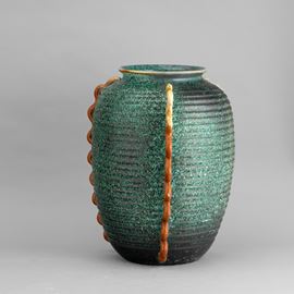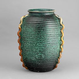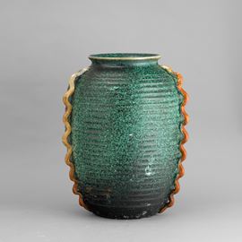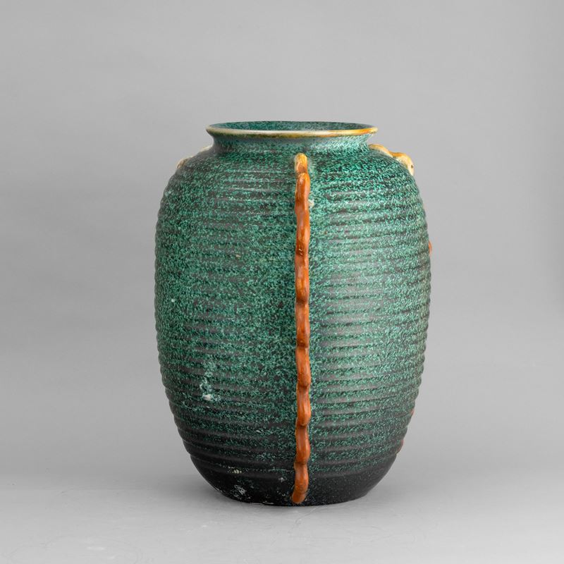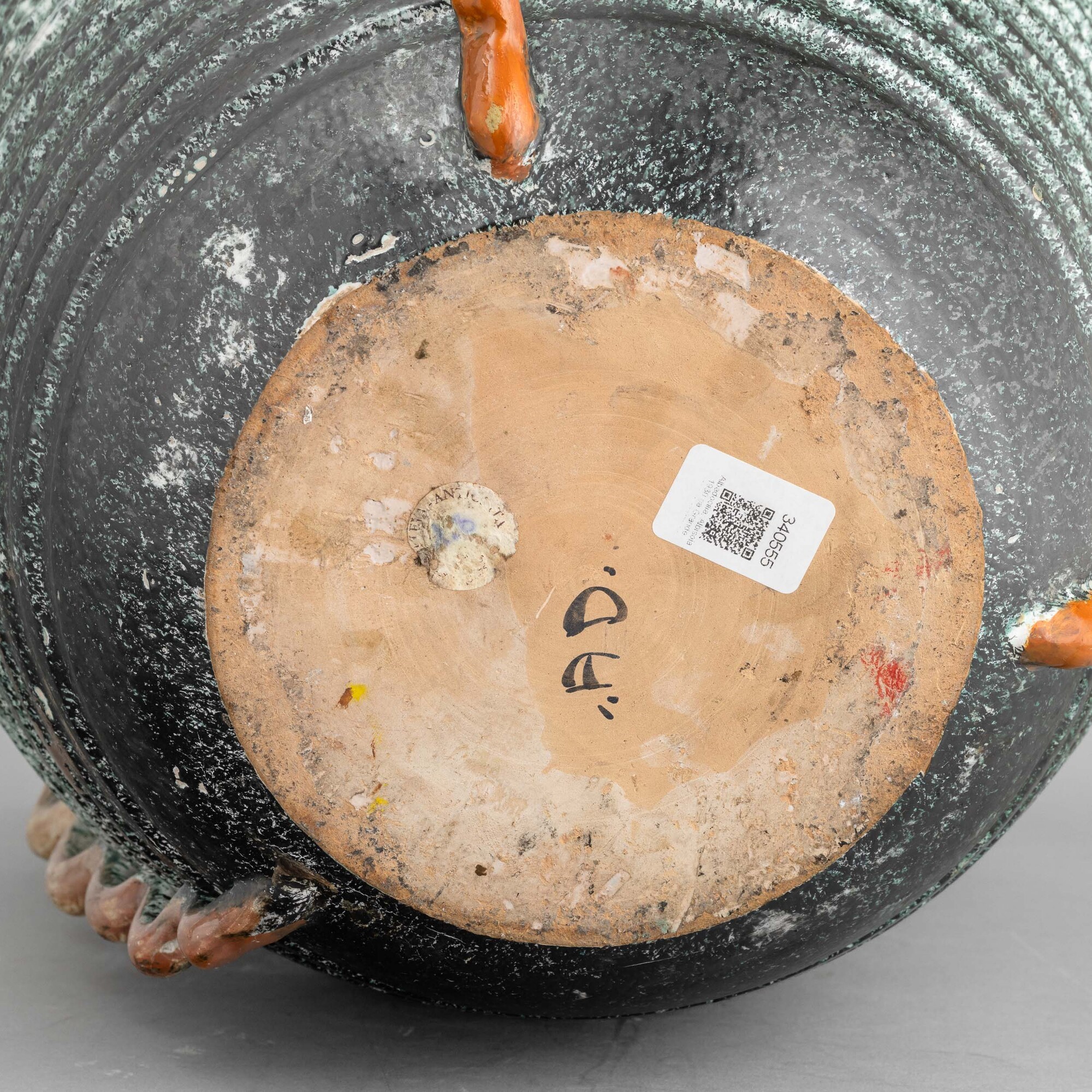 A large majolica-tiled terracotta vase. Marked AD on the base, old label
