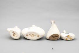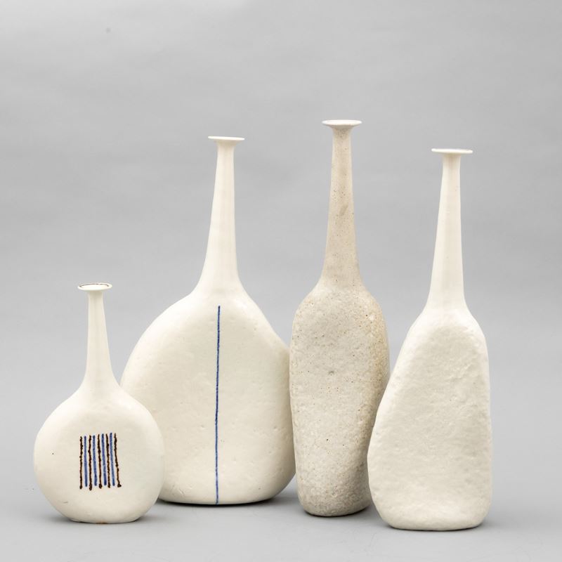 Four solifleur enamelled grès vases with a polychrome decor. Manufacturer's mark