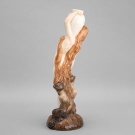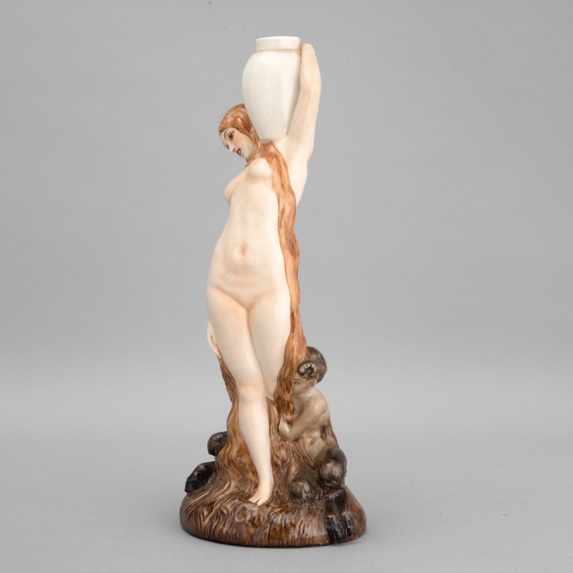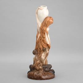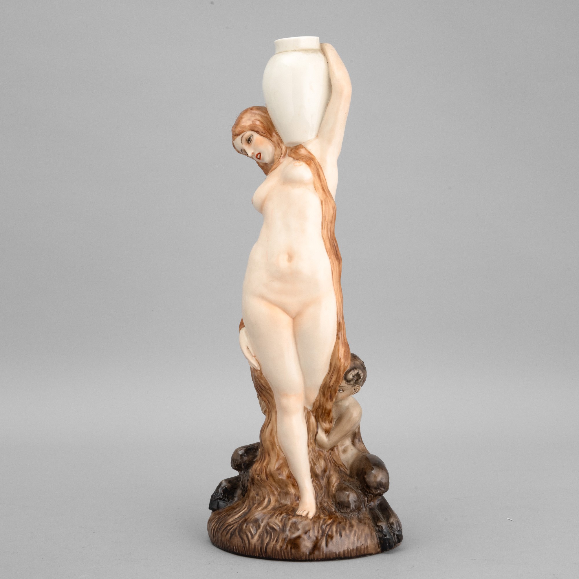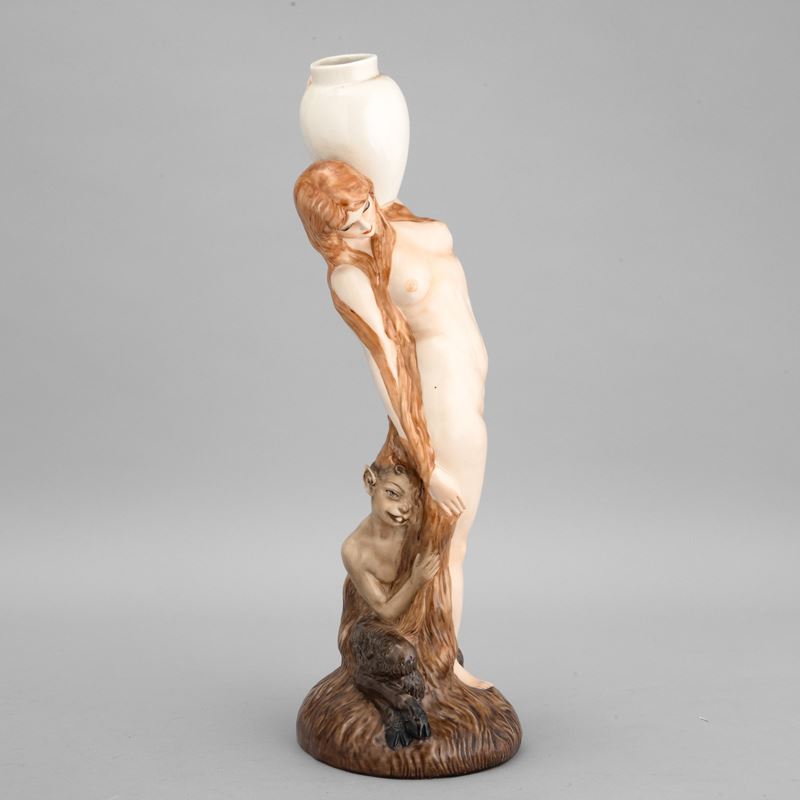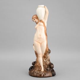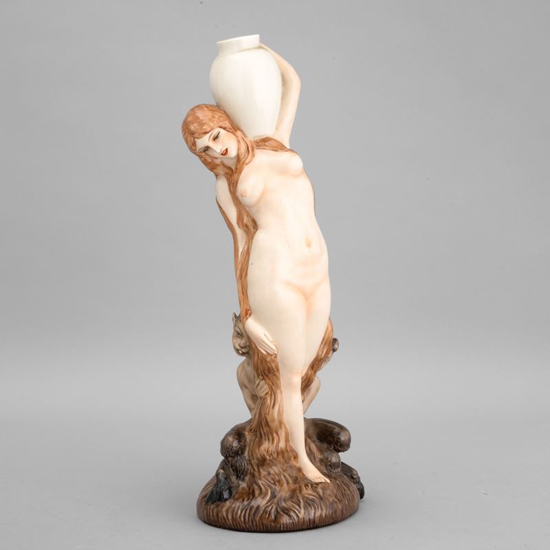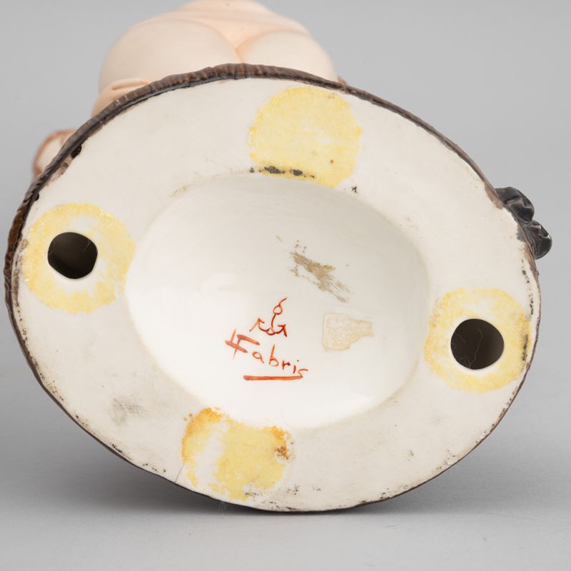 A slip-cast earthenware figurine with a polychrome decor. Manufacturer's mark
