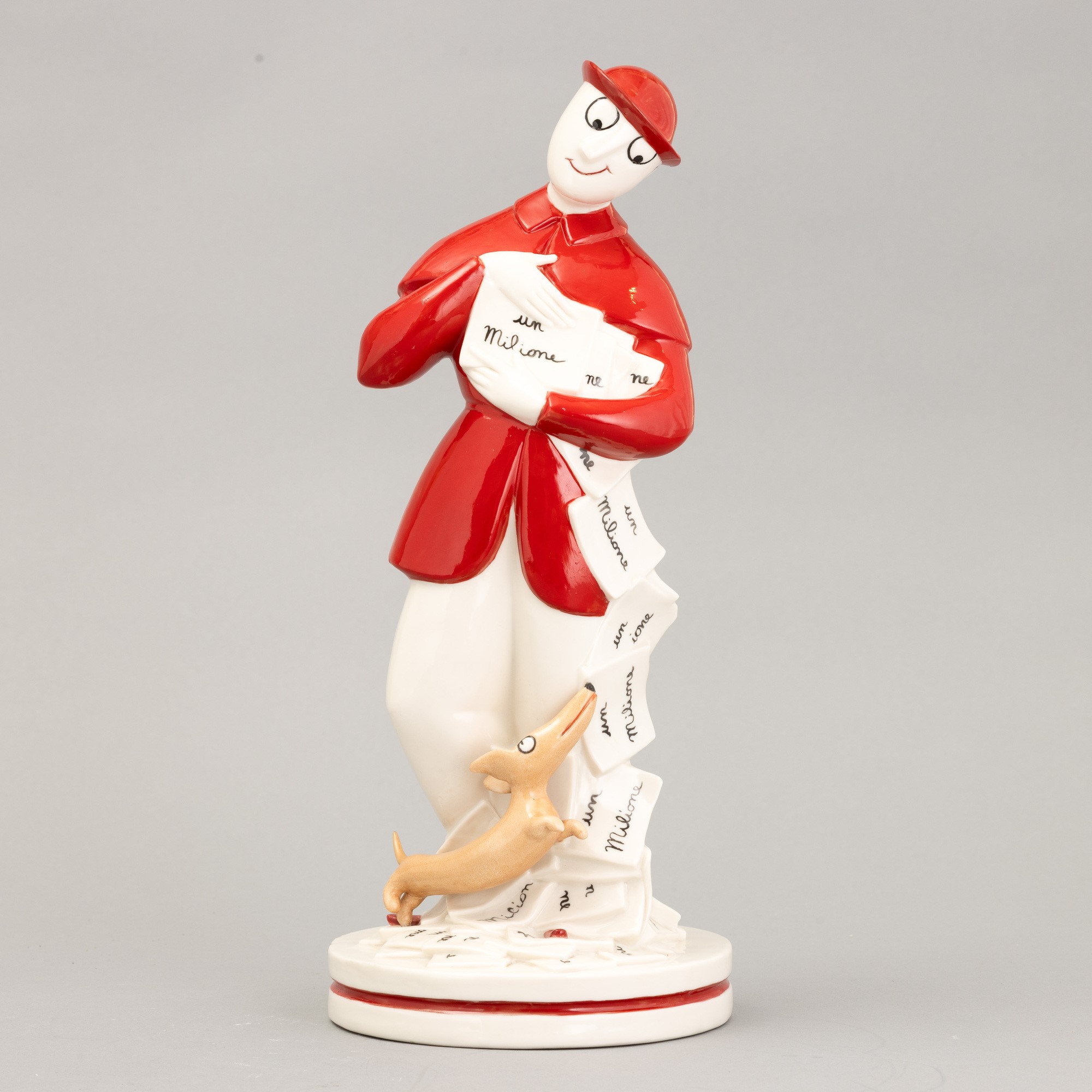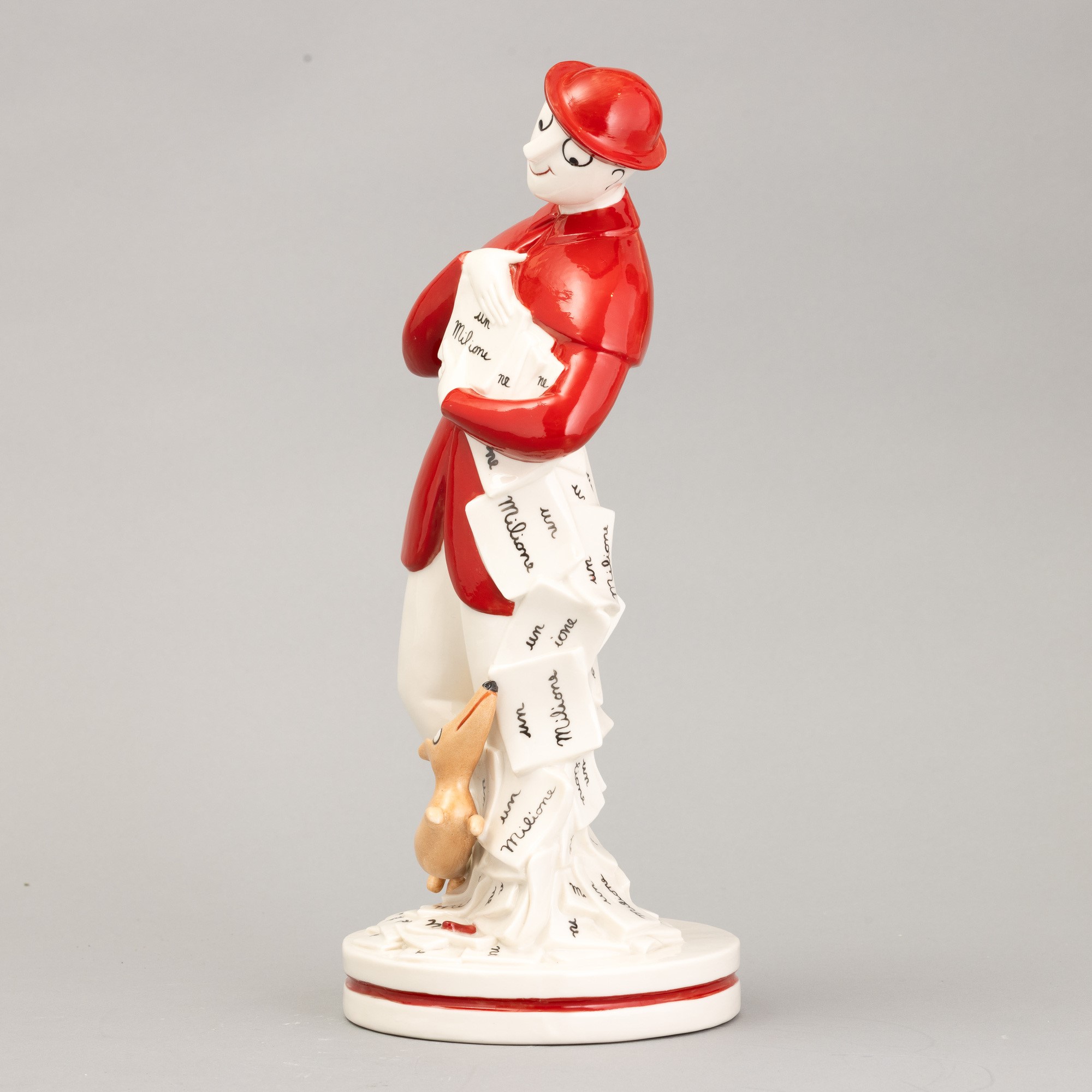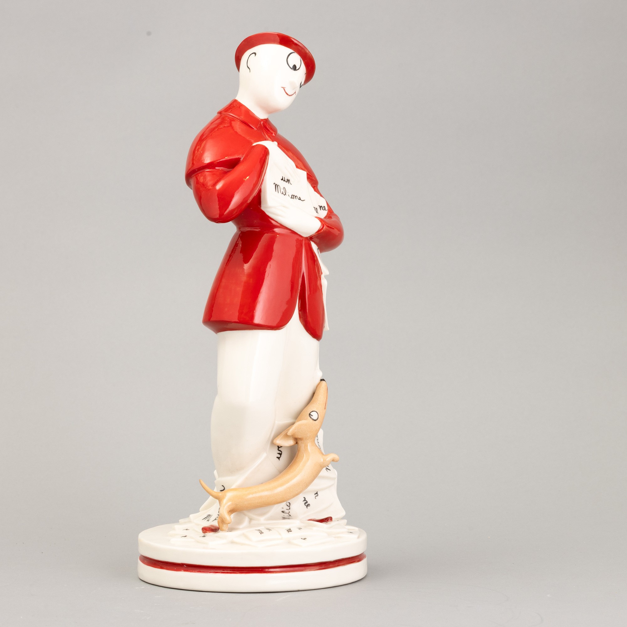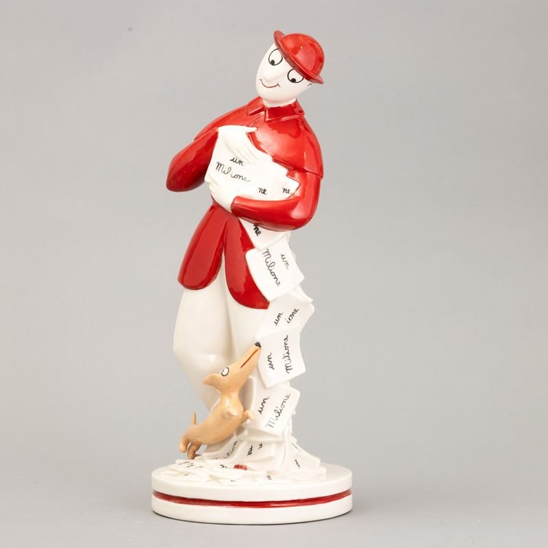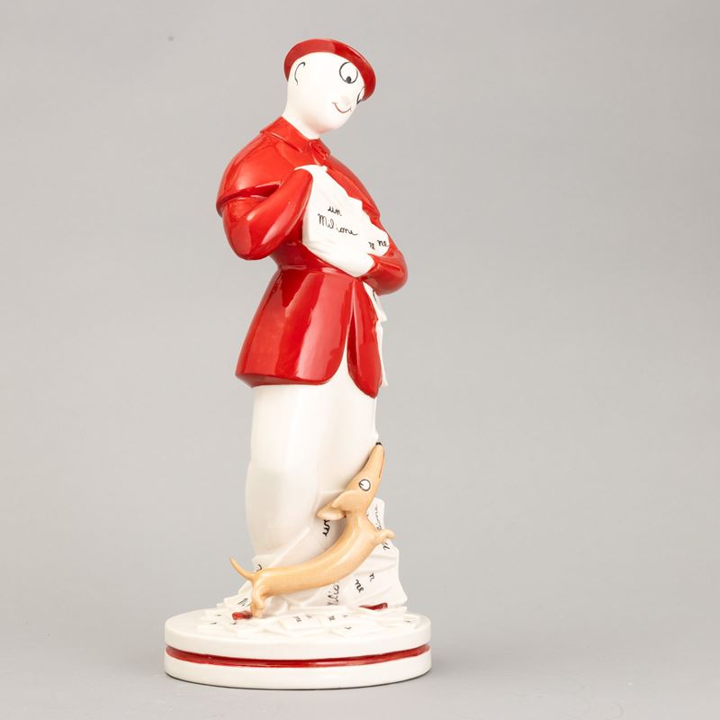 A moulded porcelain figurine of Signor Bonaventura with a polychrome decor. Manufacturer's mark