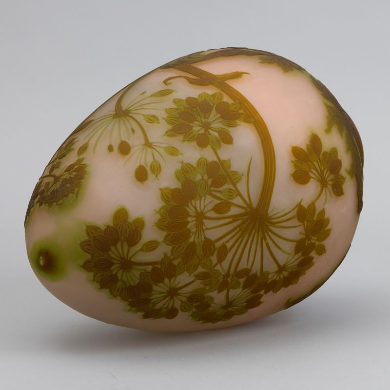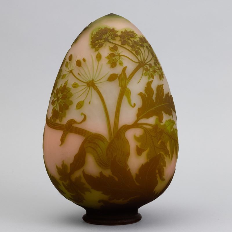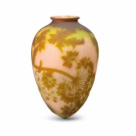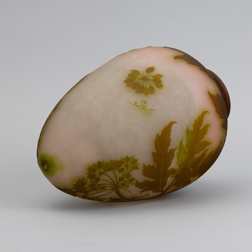 A large cameo glass lampshade with a decor of verbenas. Embossed signature