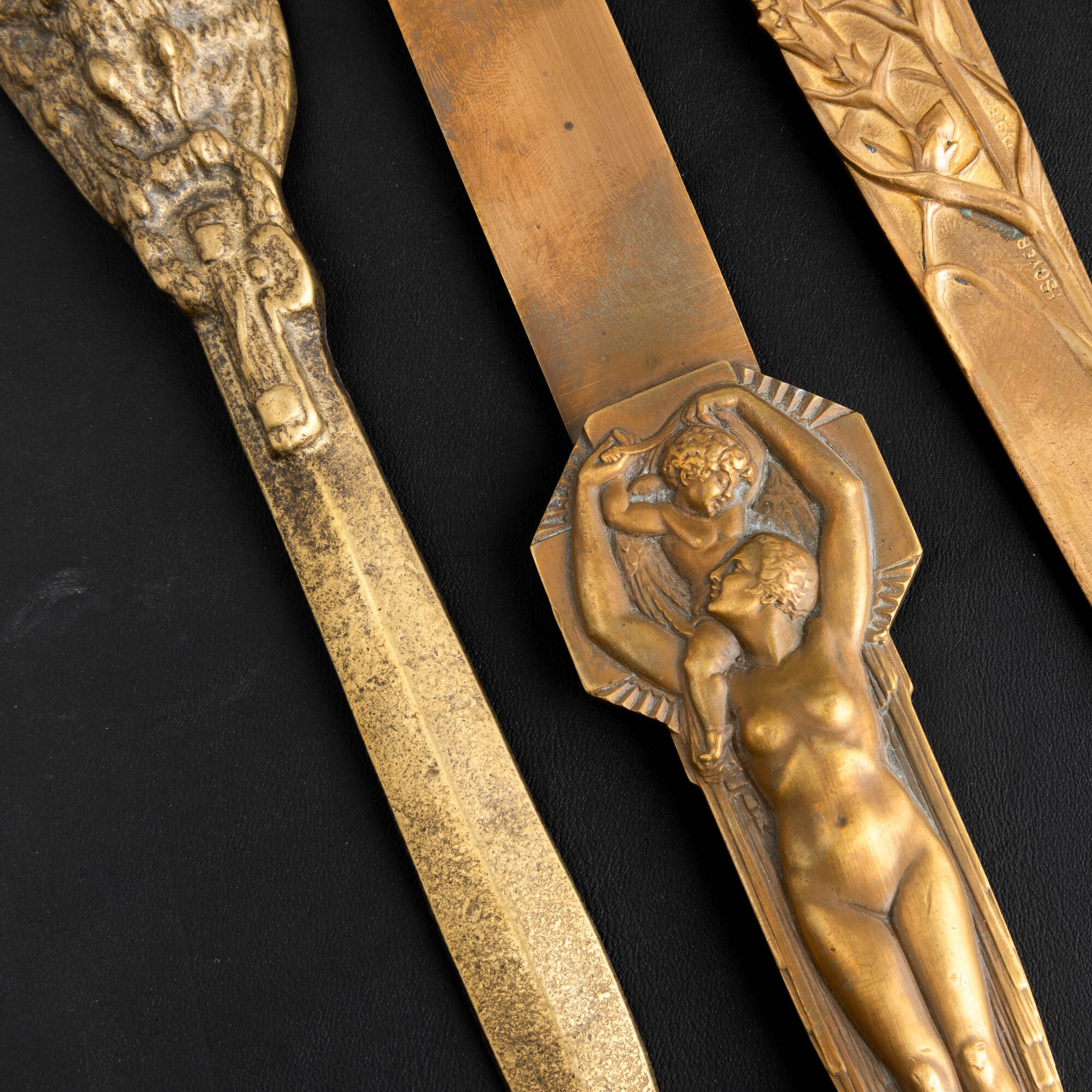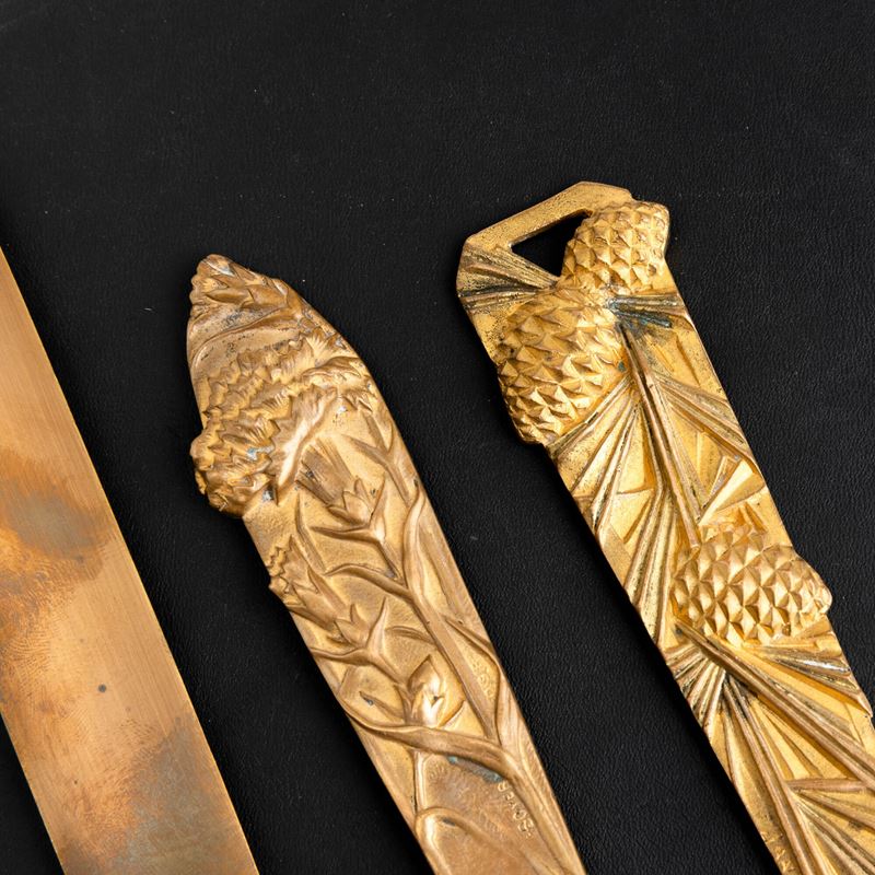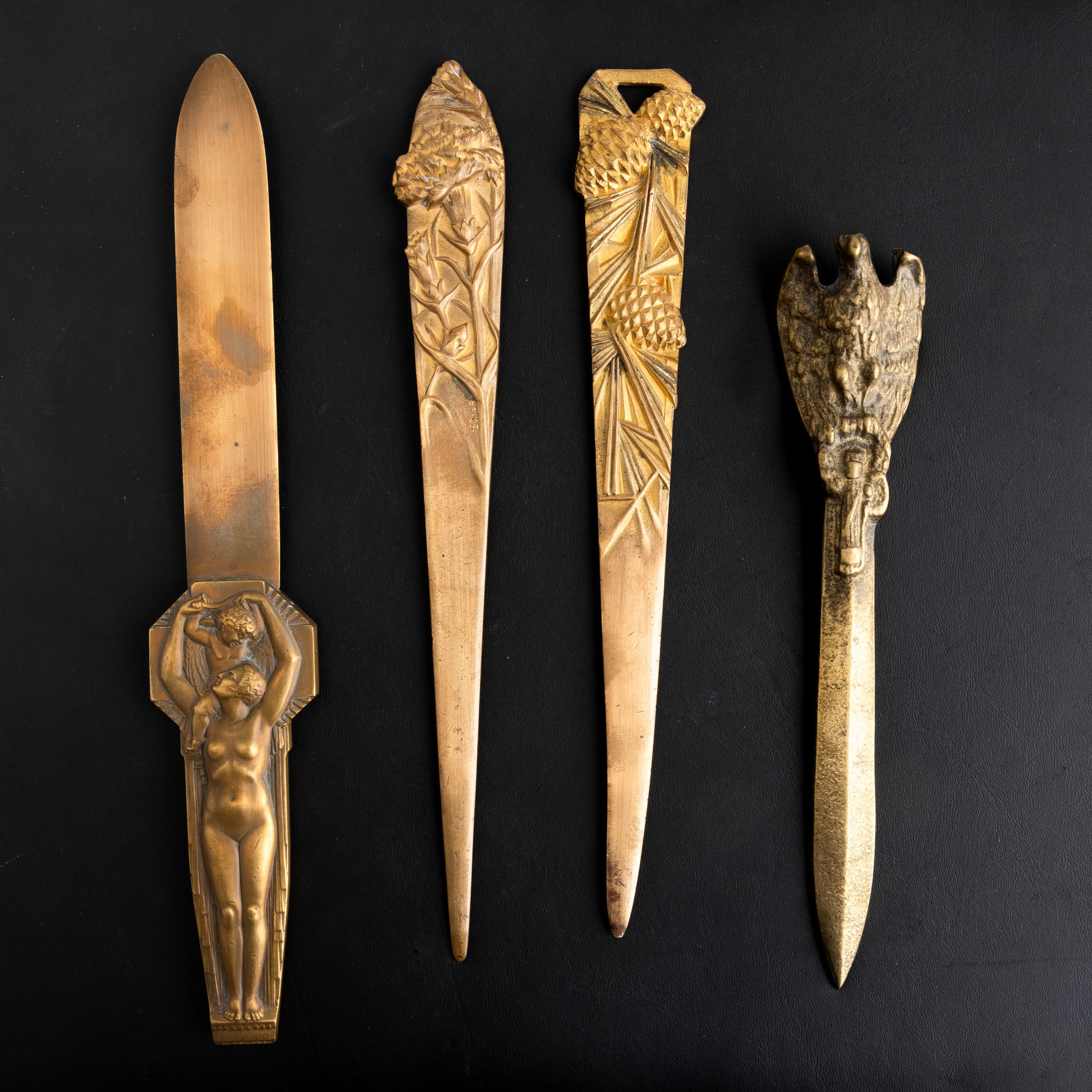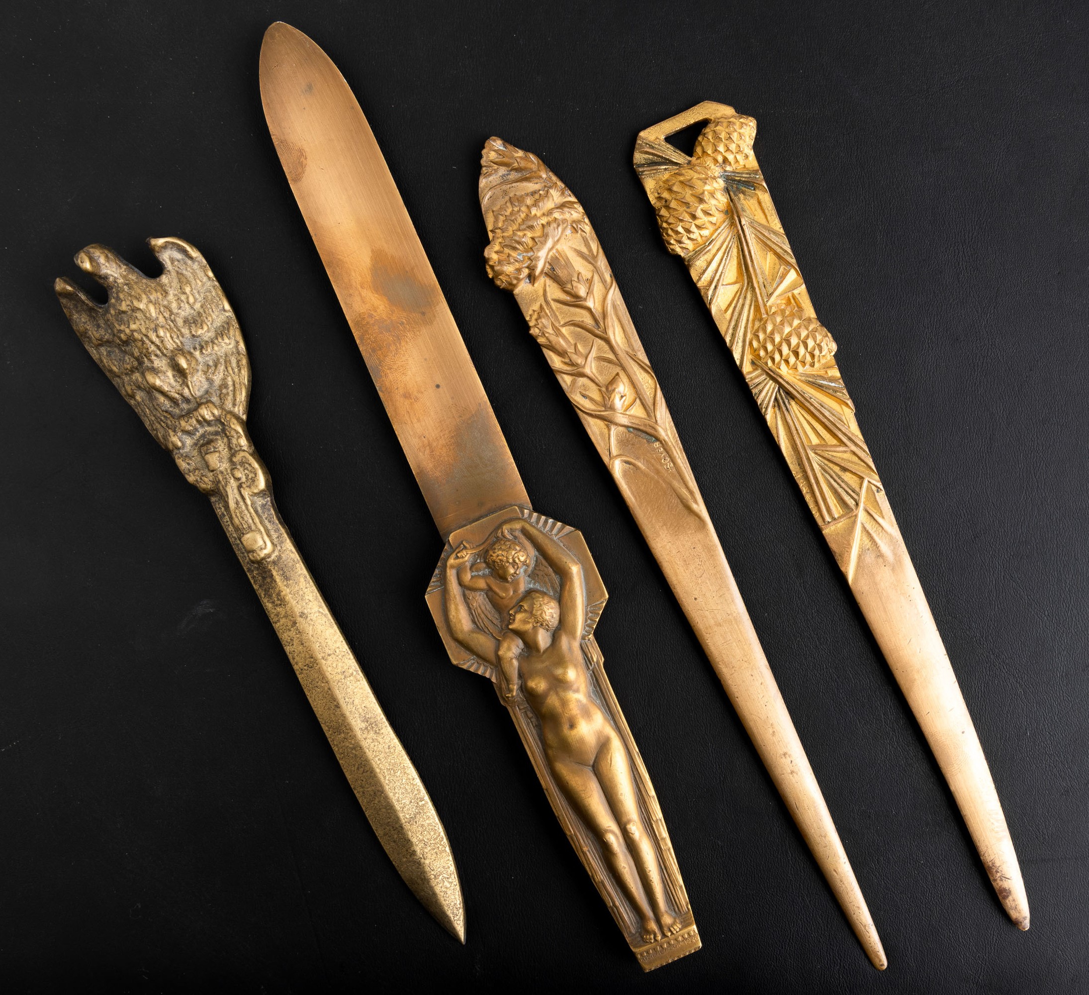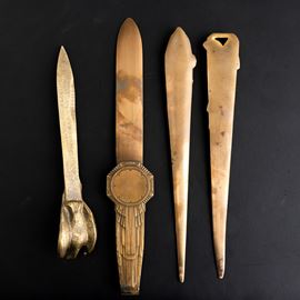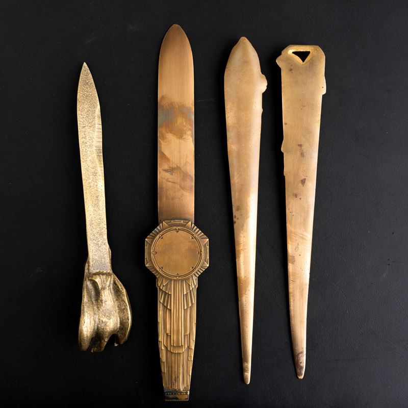 Four bronze and brass paper knives