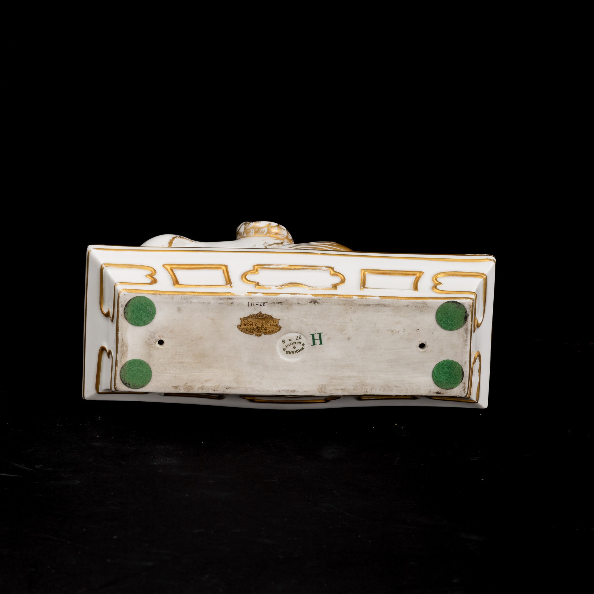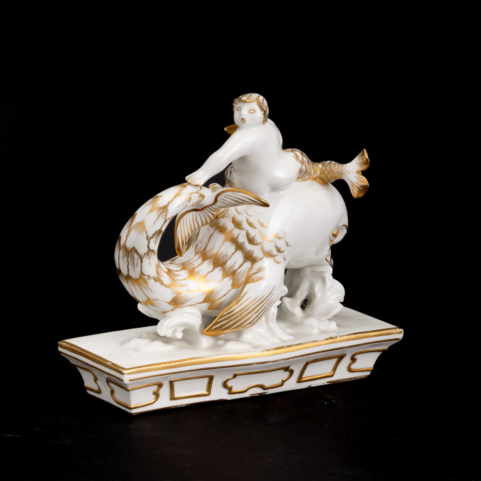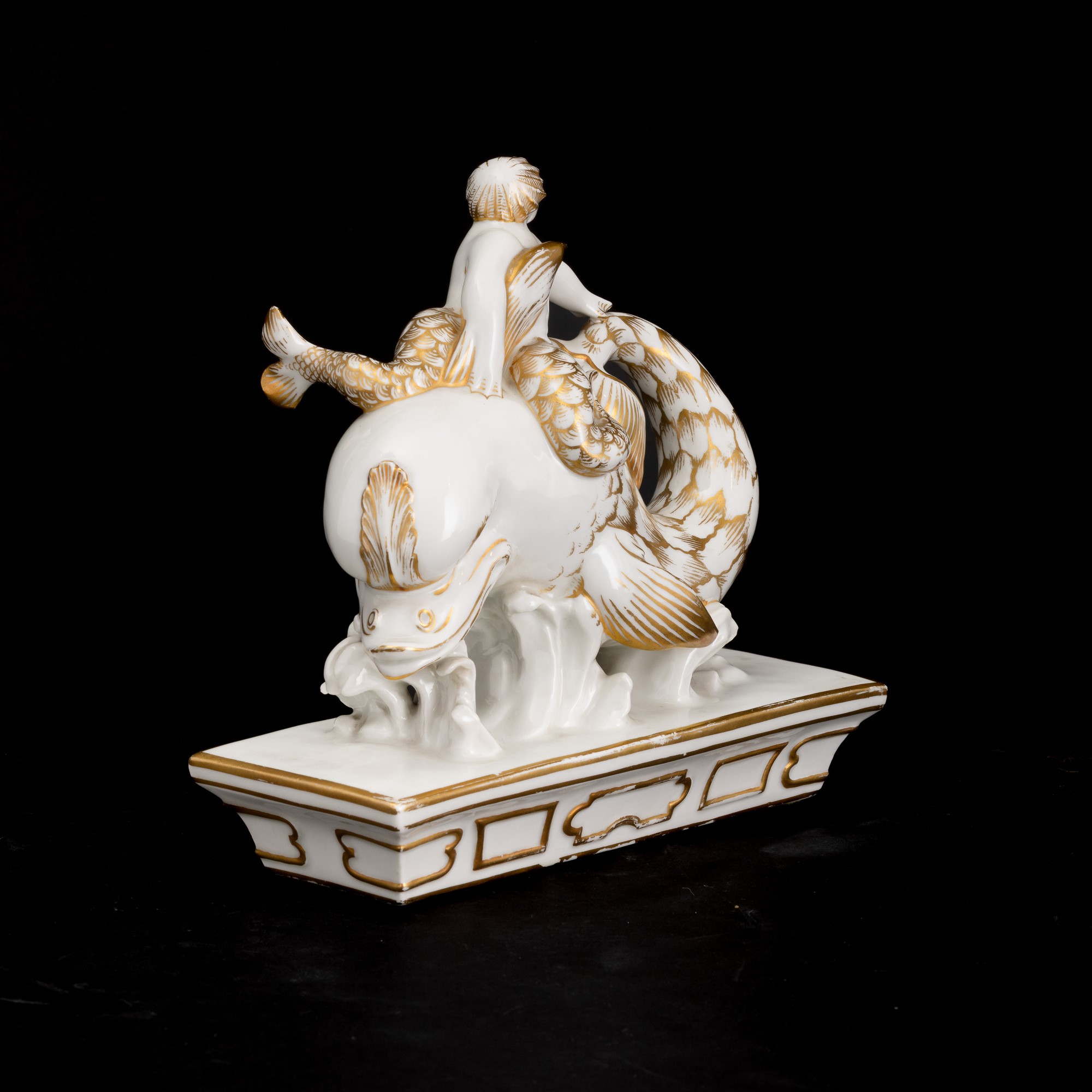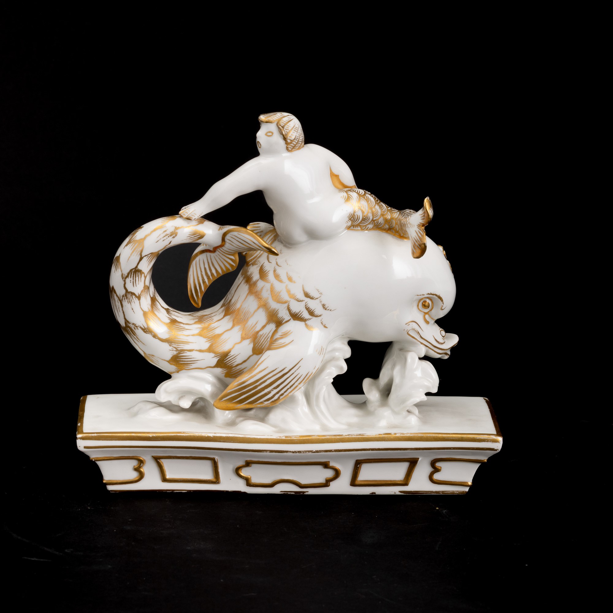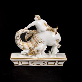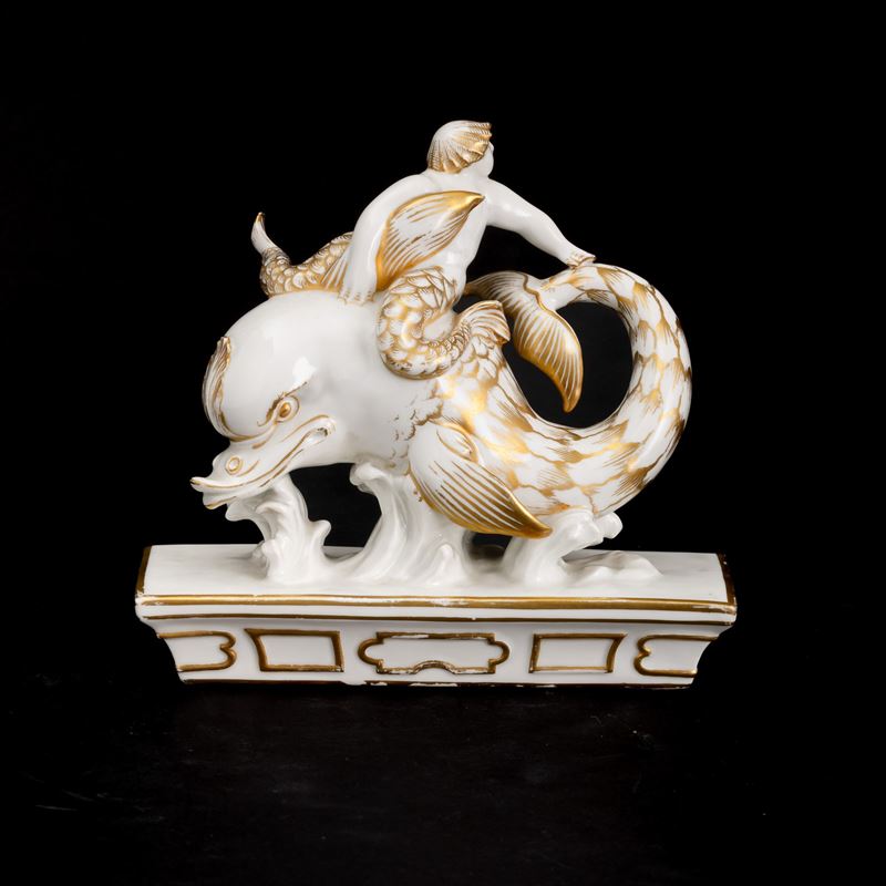 An An element of a porcelain centerpiece with a gilt overglaze decor. Manufacturer's marks