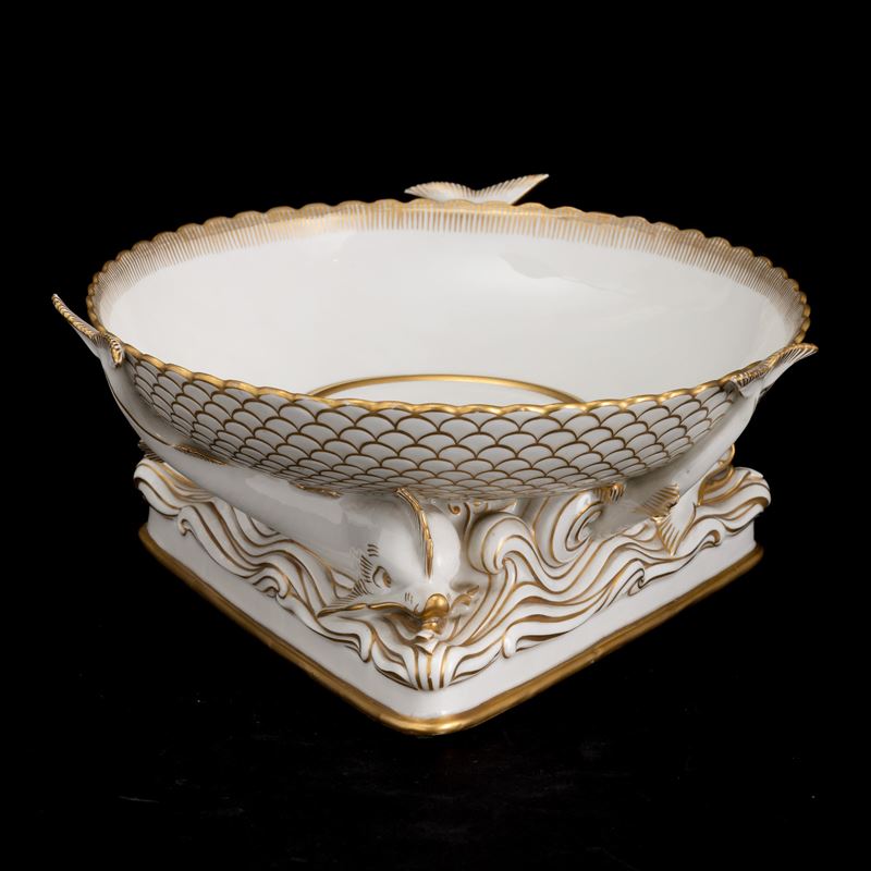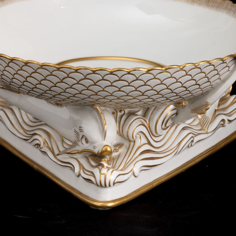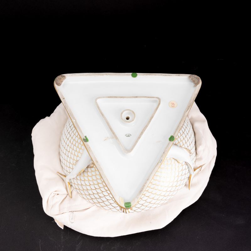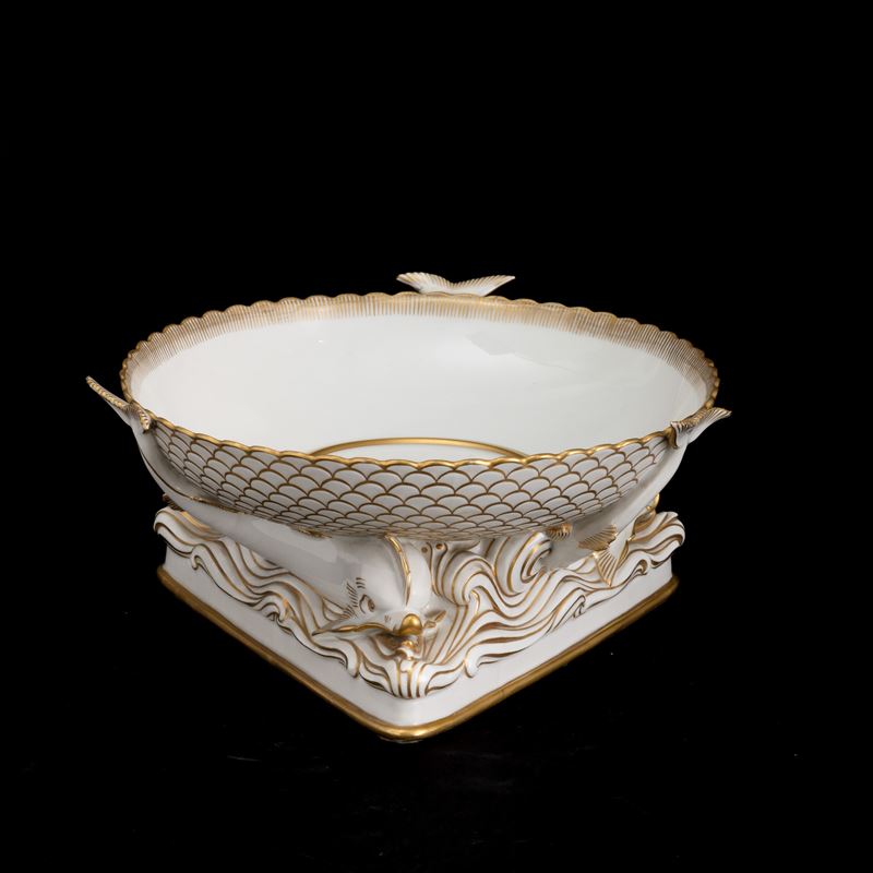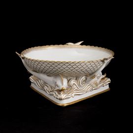A porcelain centrepiece with a gold decor. Manufacturer's mark