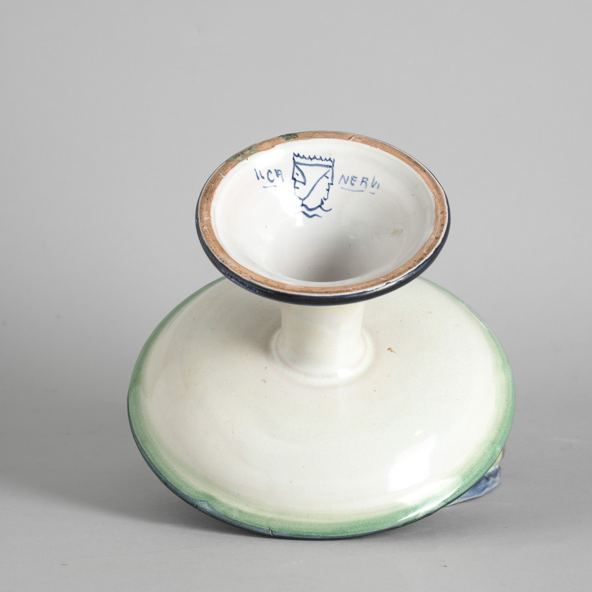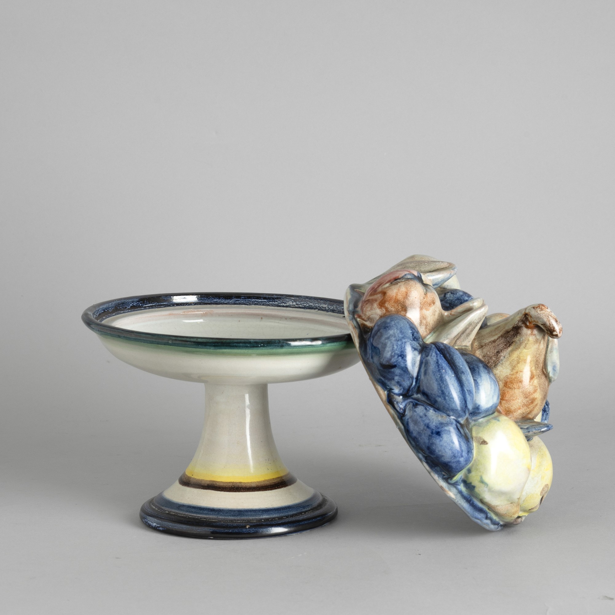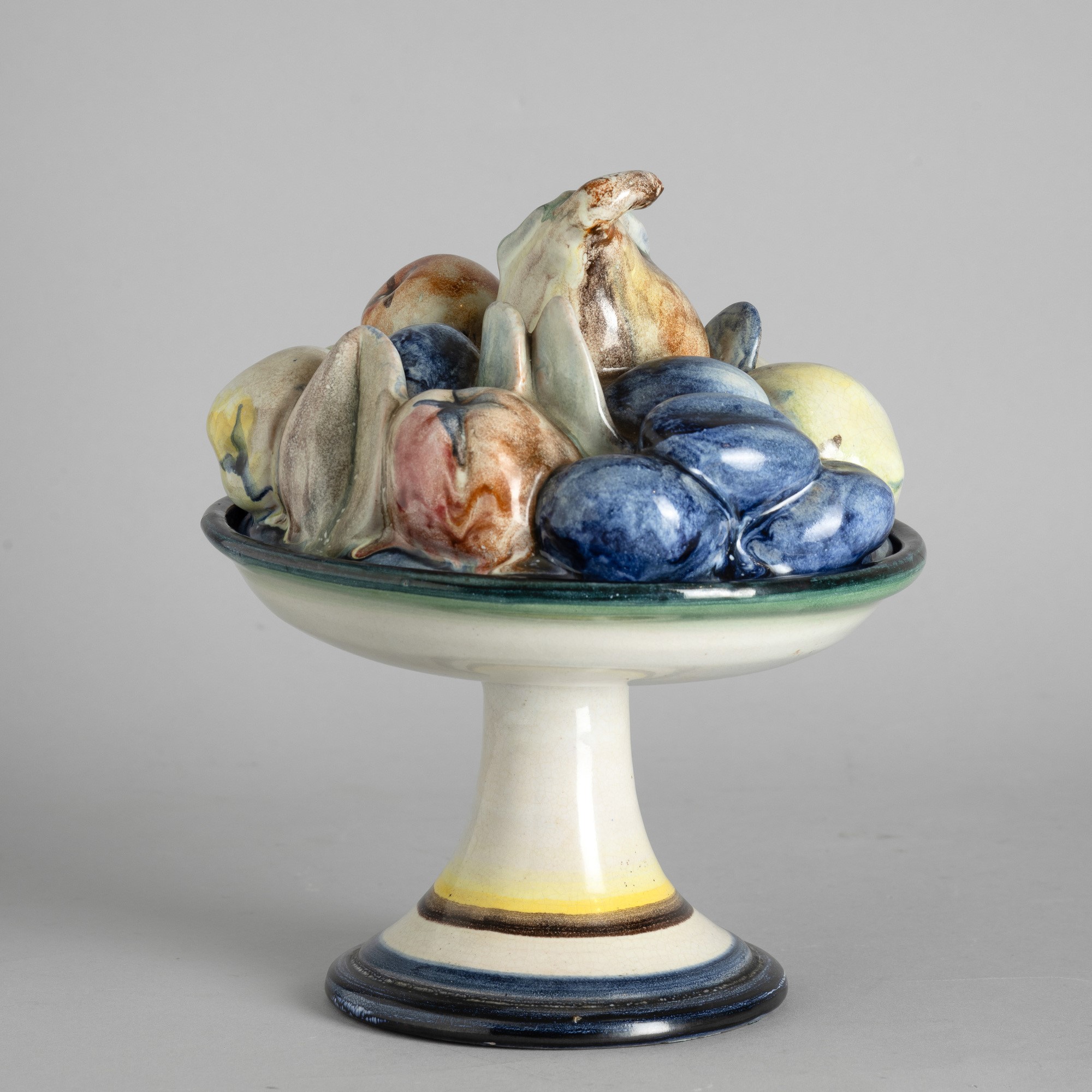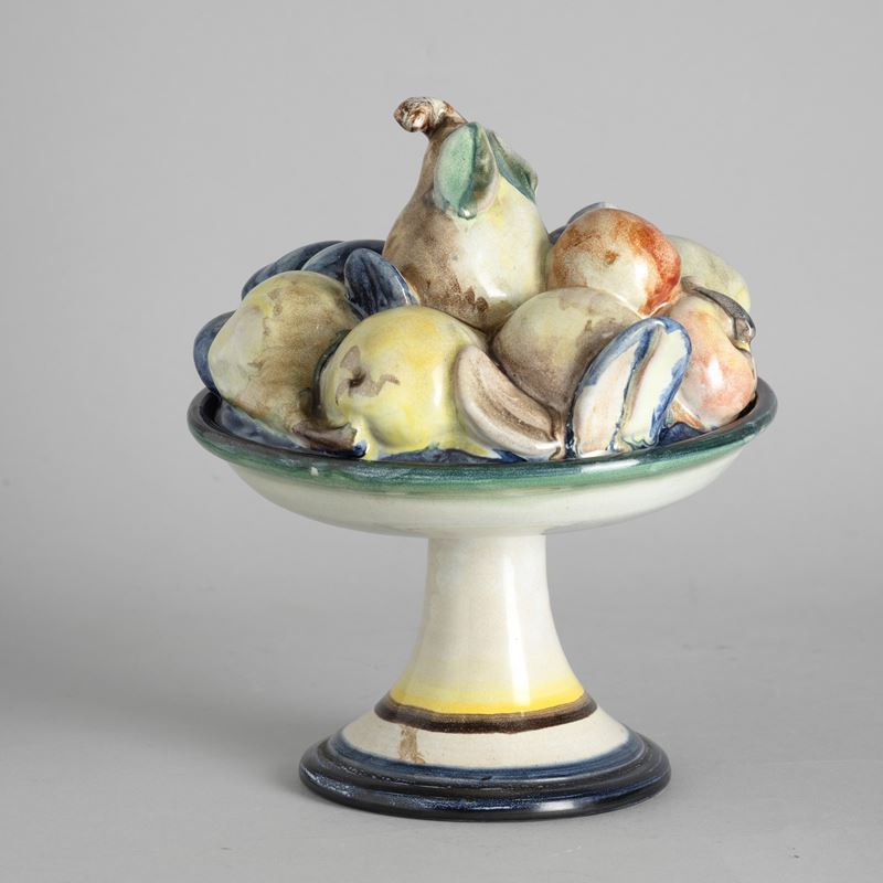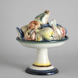 A ceramic fruit stand with a polychrome enamel decor. Manufacturer's mark