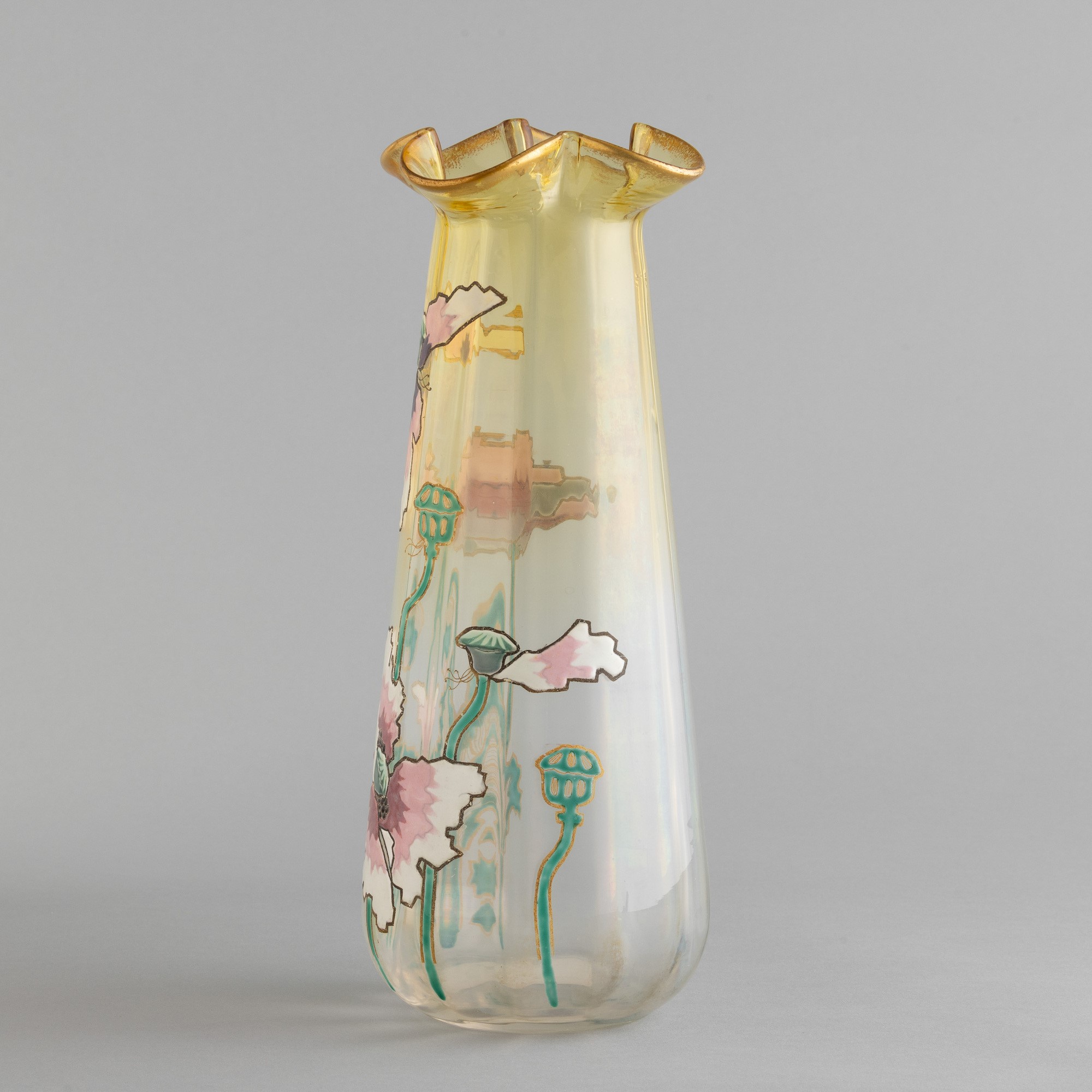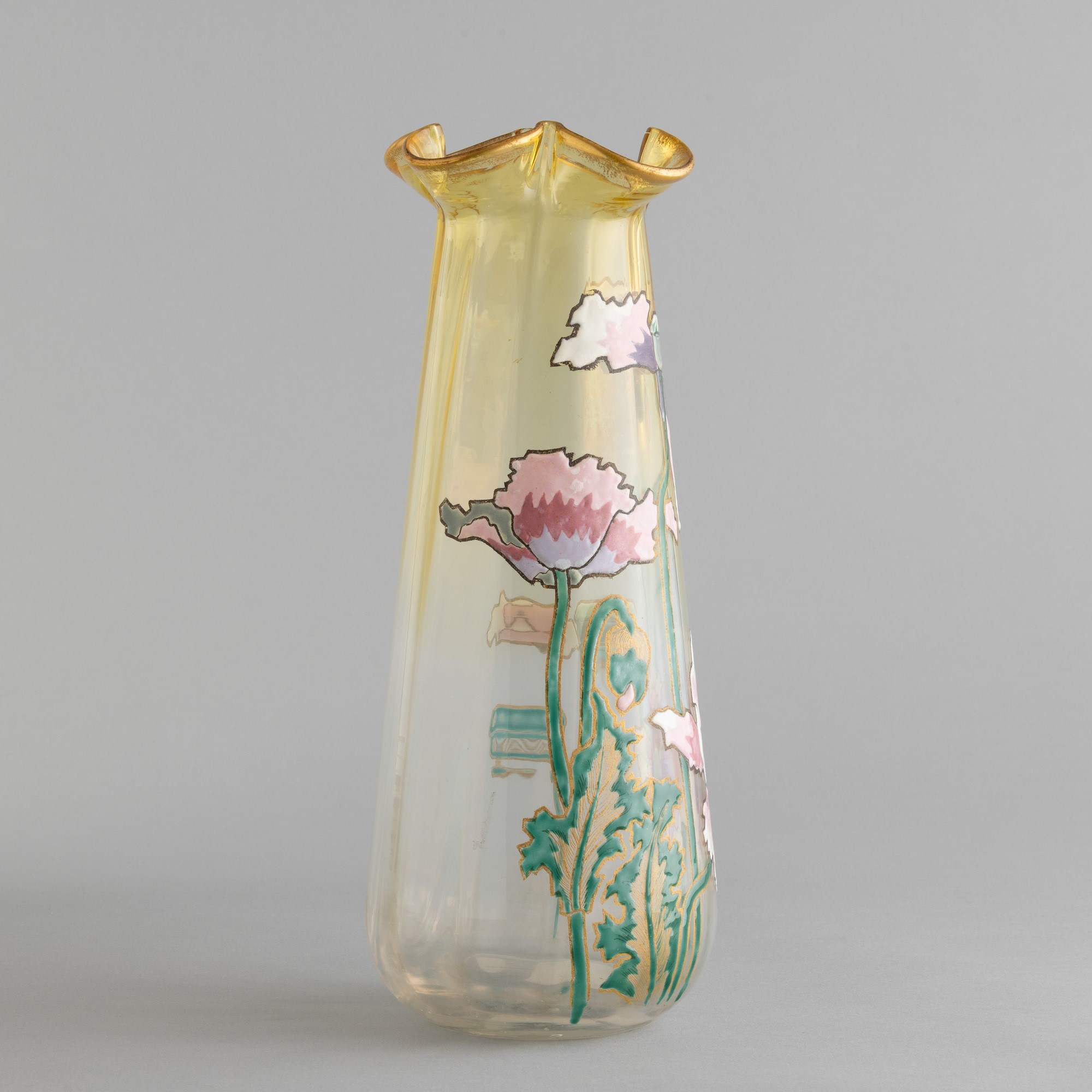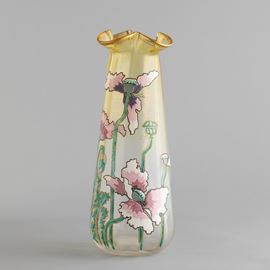 A blown glass vase with an enamelled and gilt decor