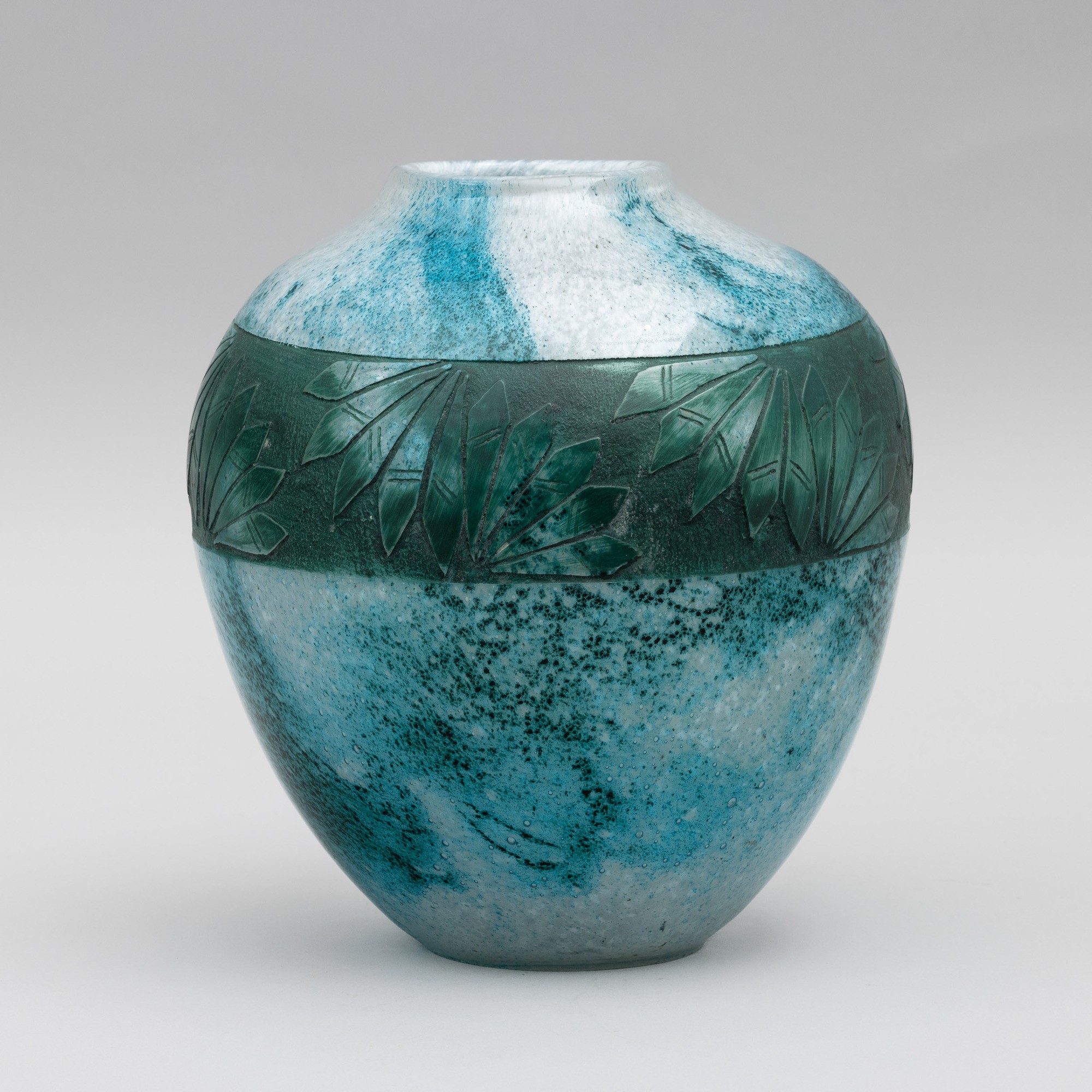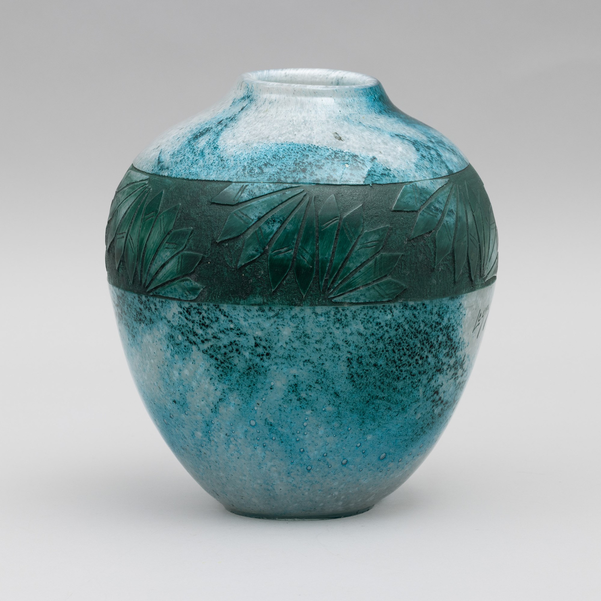 A cameo glass vase. Embossed signature