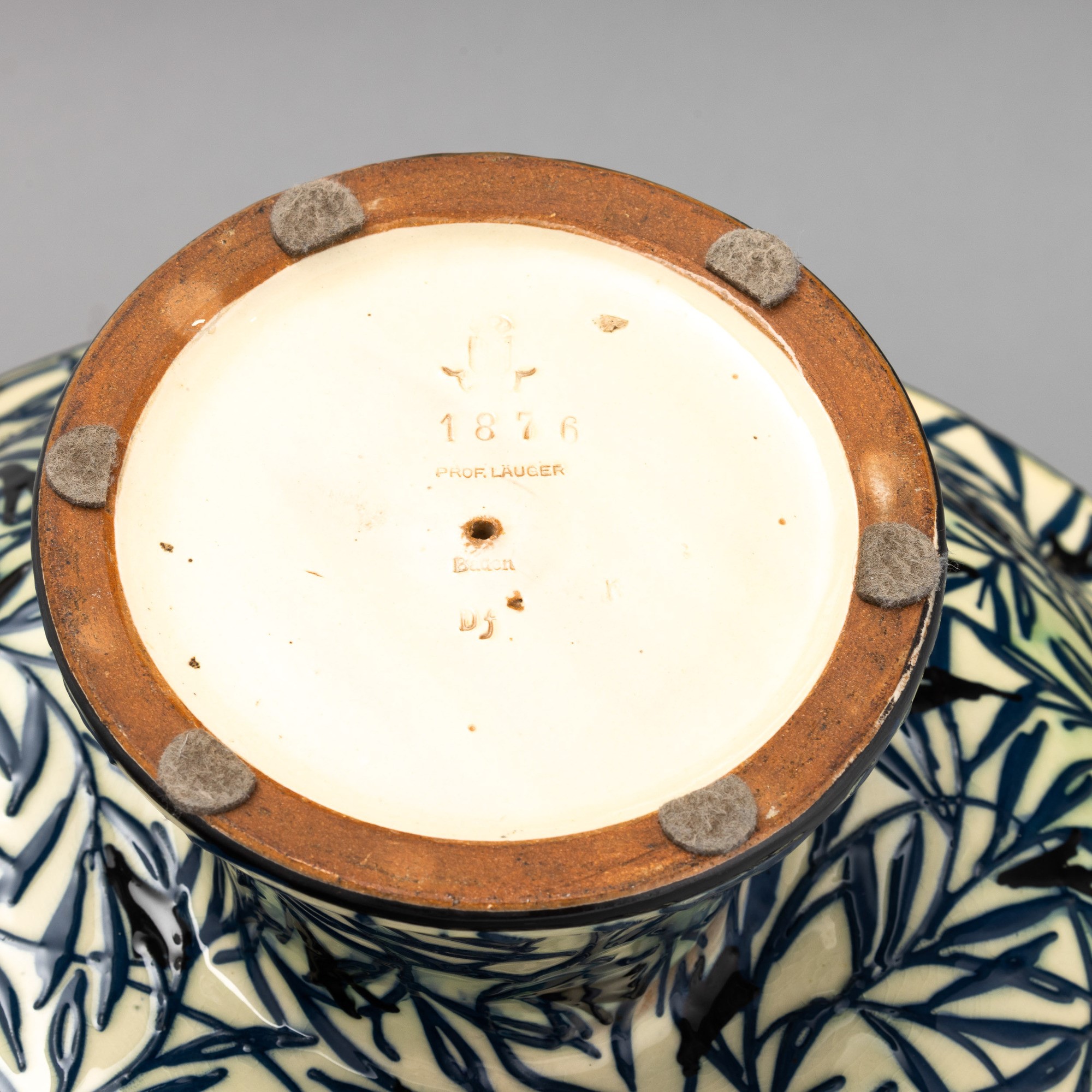 A large ceramic bowl with an embossed decor. Marked Prof. Lauger and Baden on the base