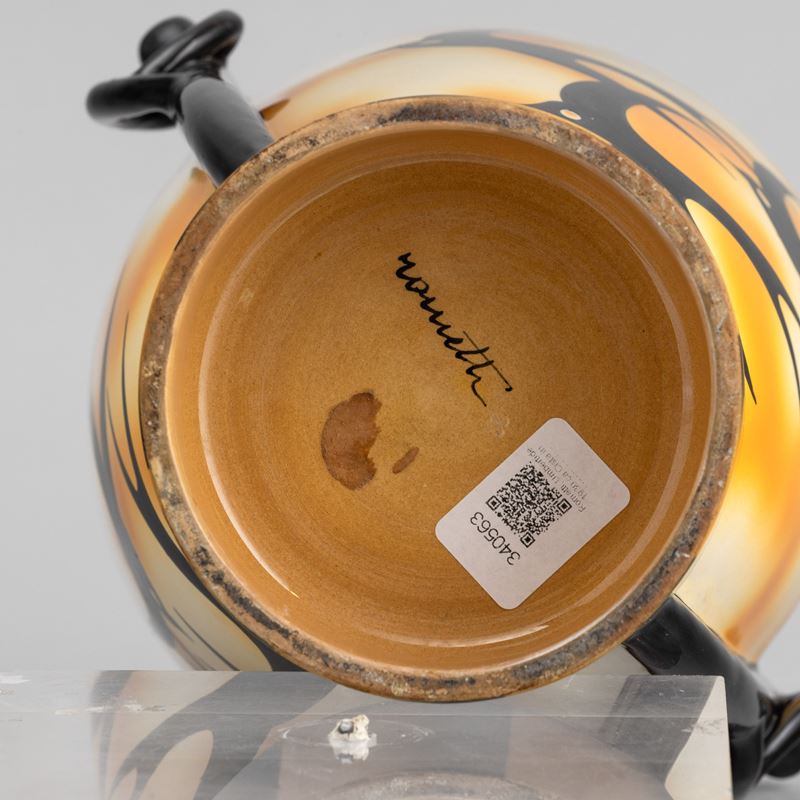 A majolica-tiled terracotta vase with a polychrome decor. Manufacturer's mark