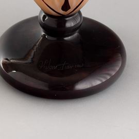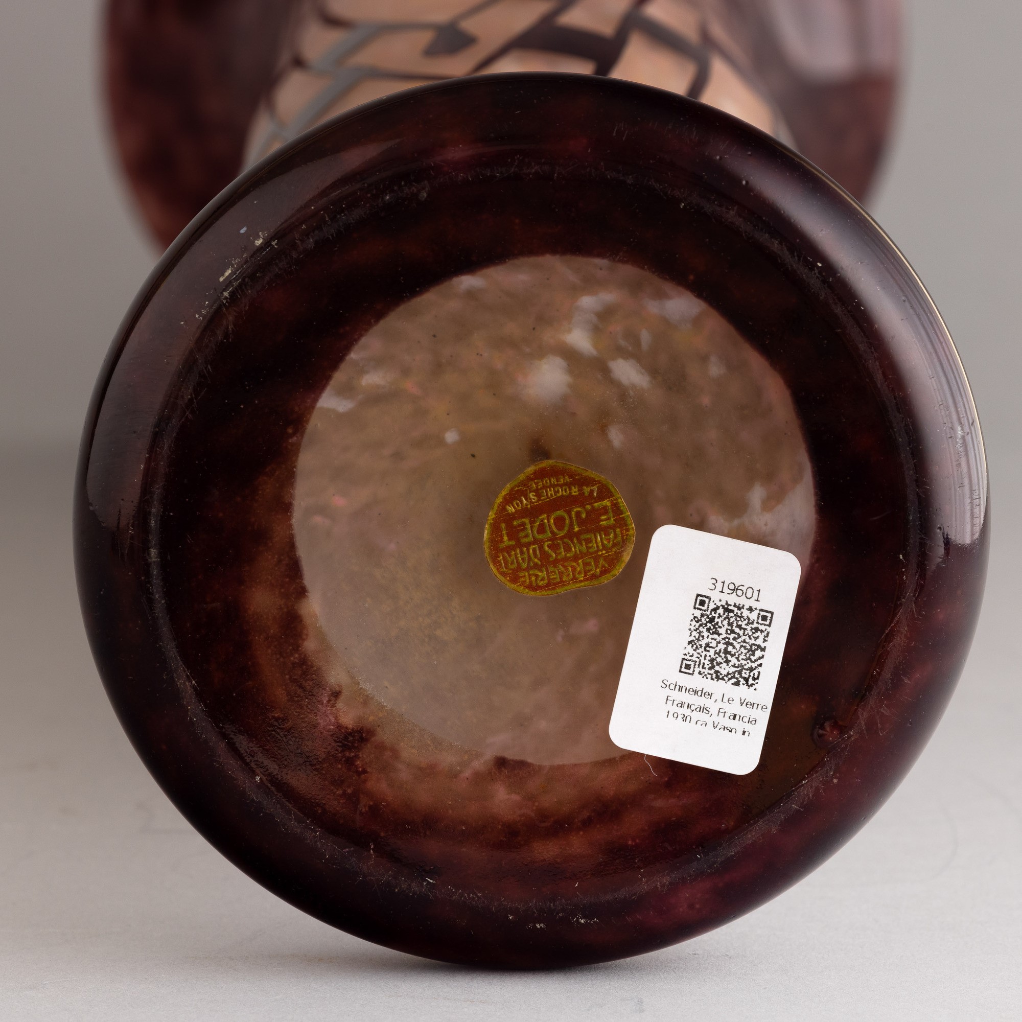 A blown glass vase with a cameo decor. Engraved signature and old label