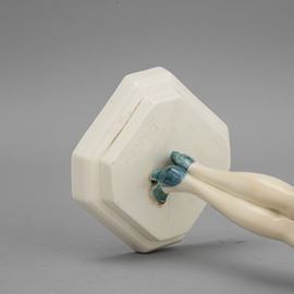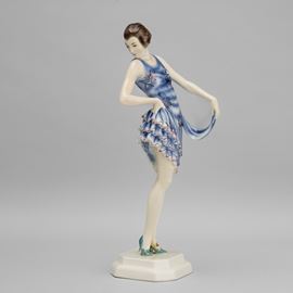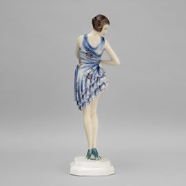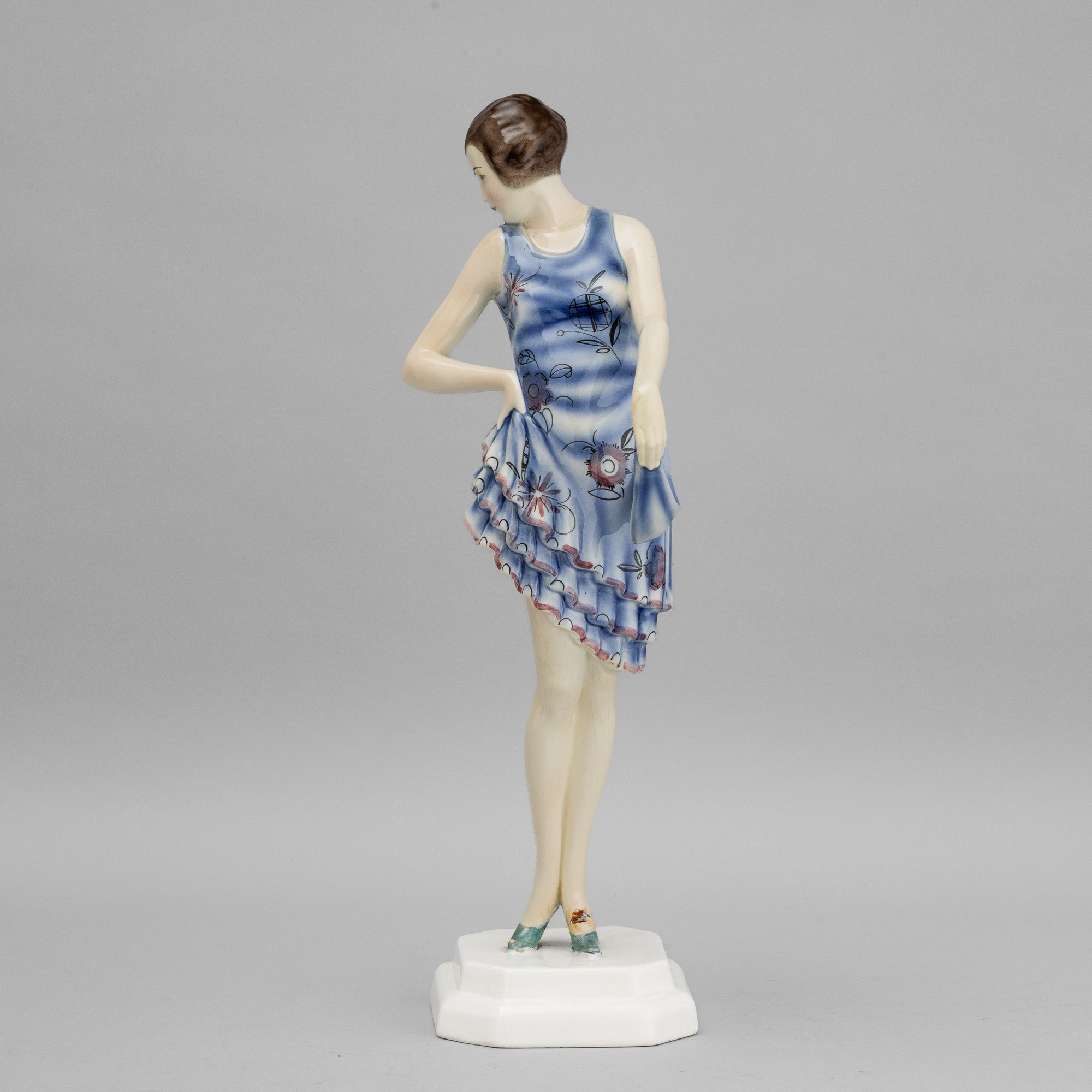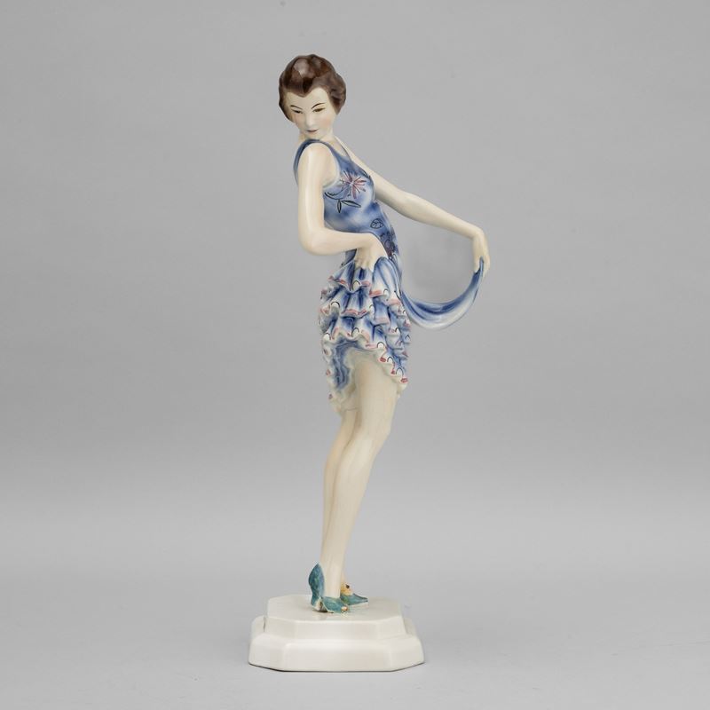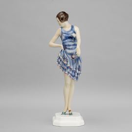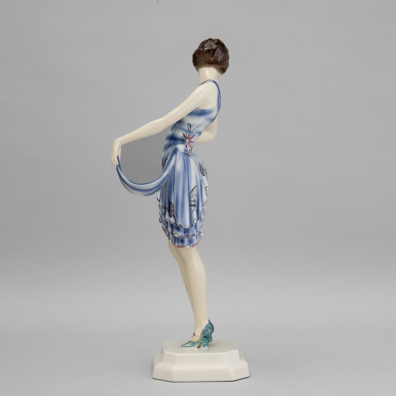 A slip-cast earthenware sculpture of a ballerina with a polychrome decor. Stamped signature and manufacturer's mark. Broken parts