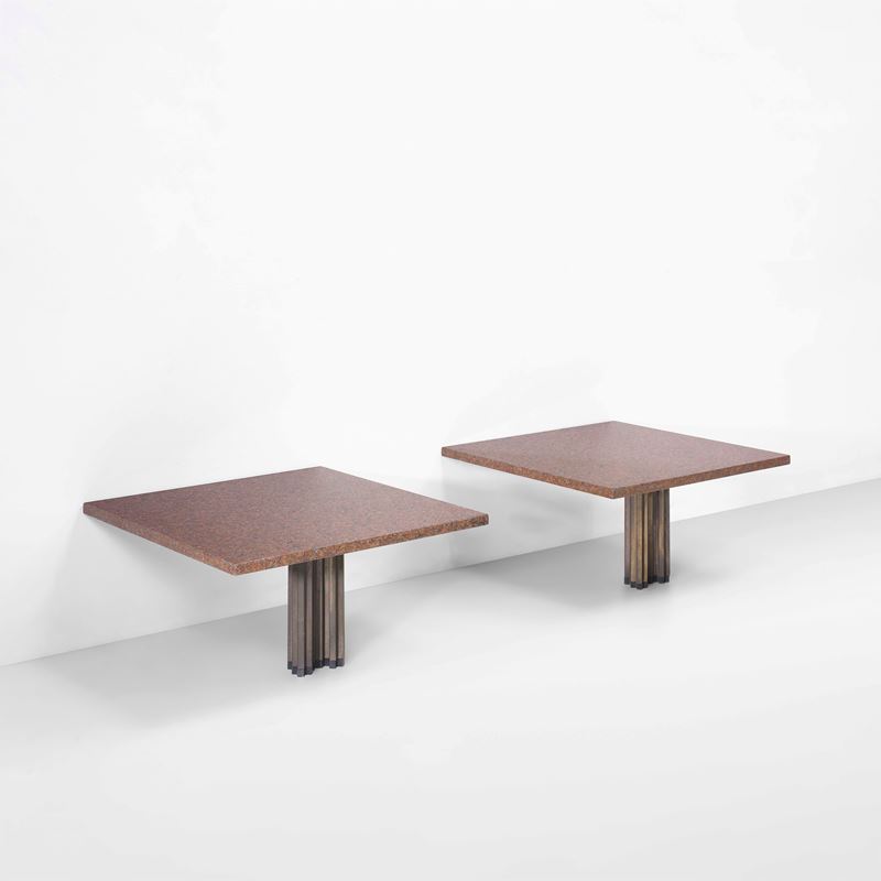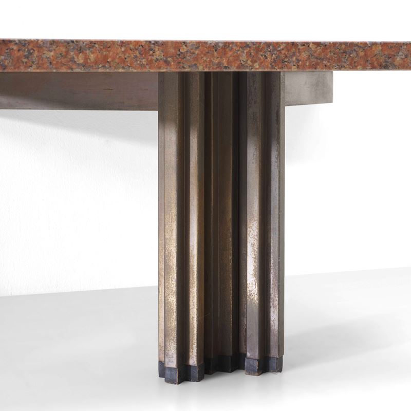 Bronze and brass structure with marble top.