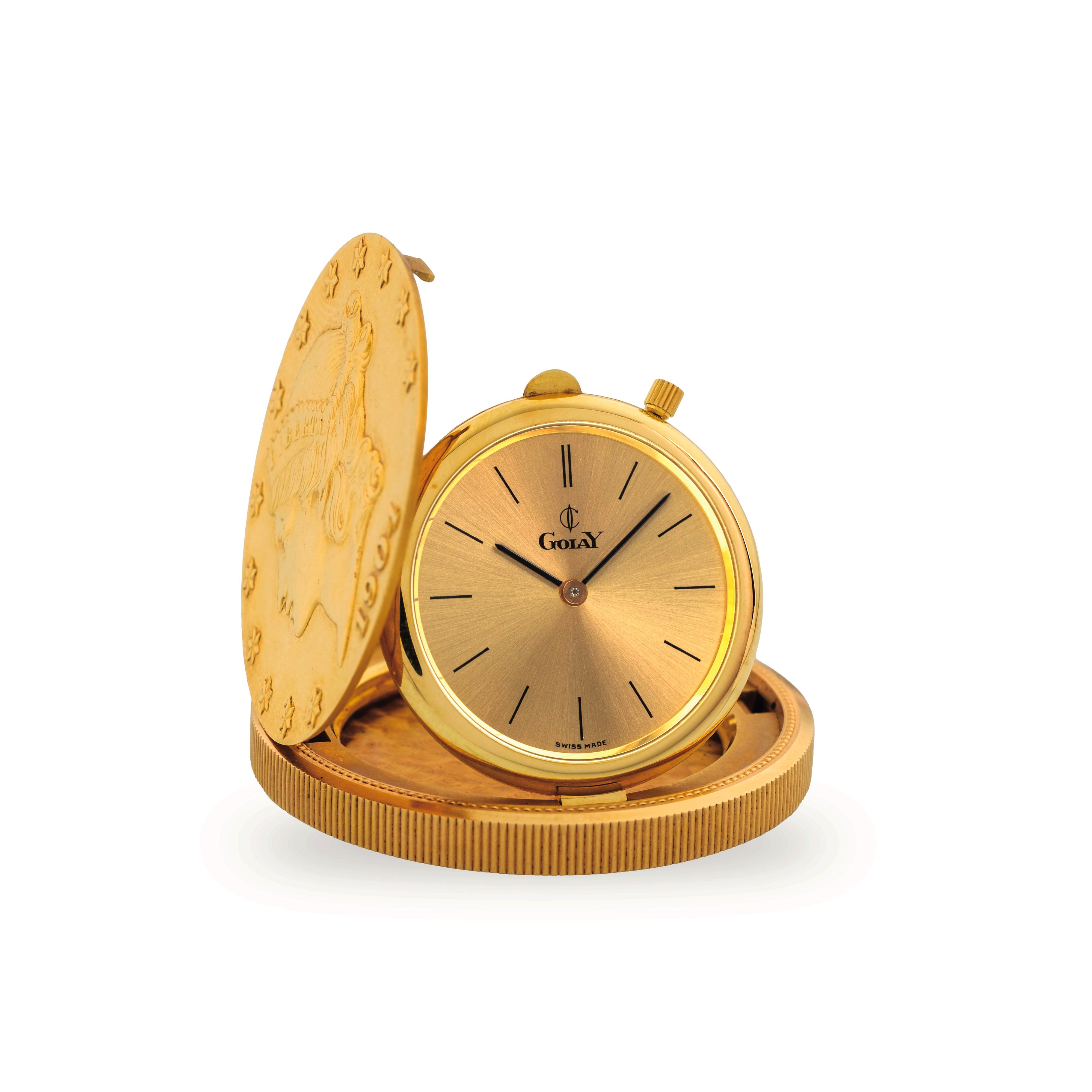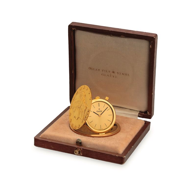 Coin Watch 20 Dollars Liberty 1904 in yellow gold, hand-wound movement, with original box, circa 1980