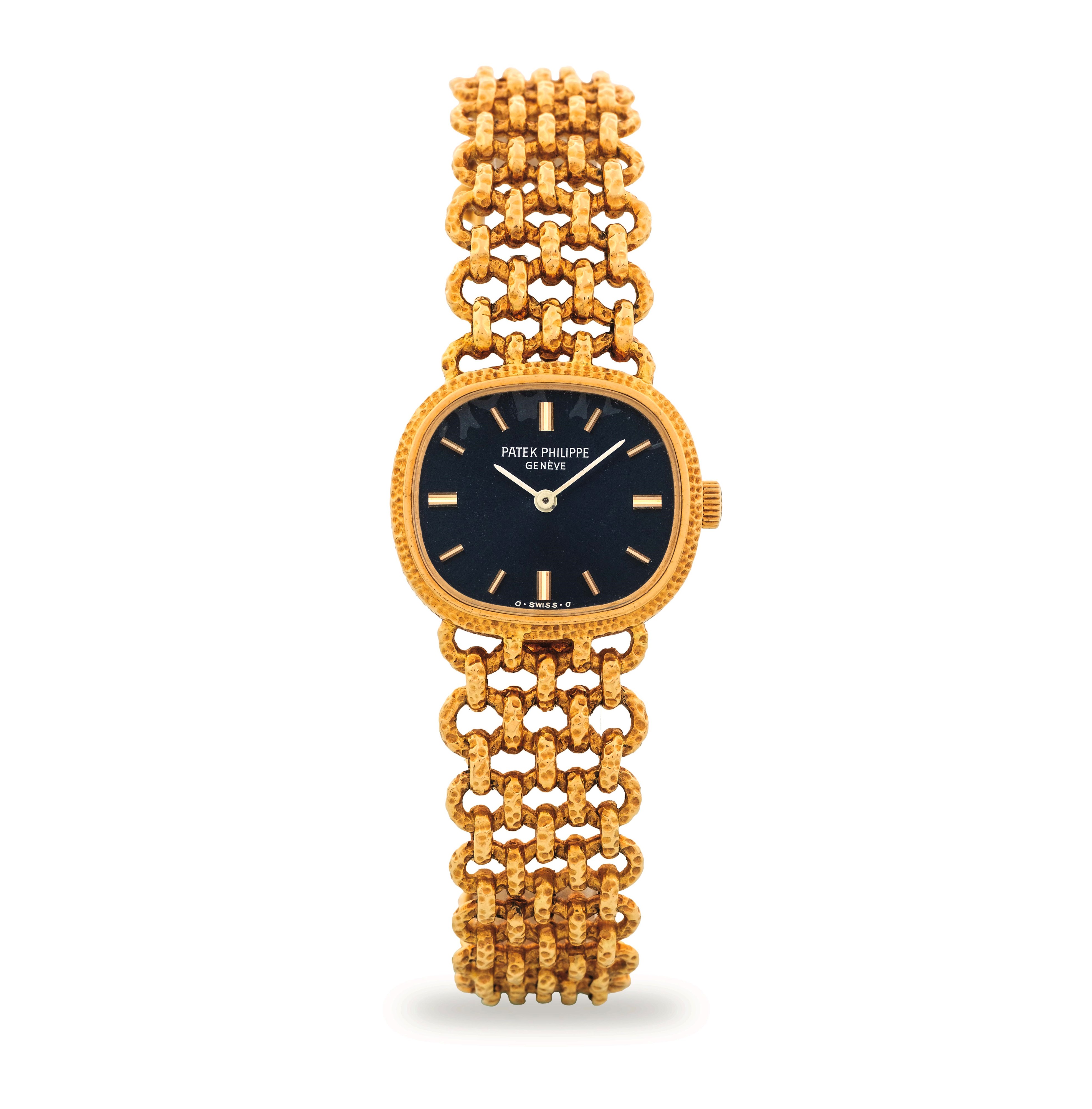 Mini Ellipse ref 4133 in 18k yellow gold with integrated bracelet, blue dial, circa 1970