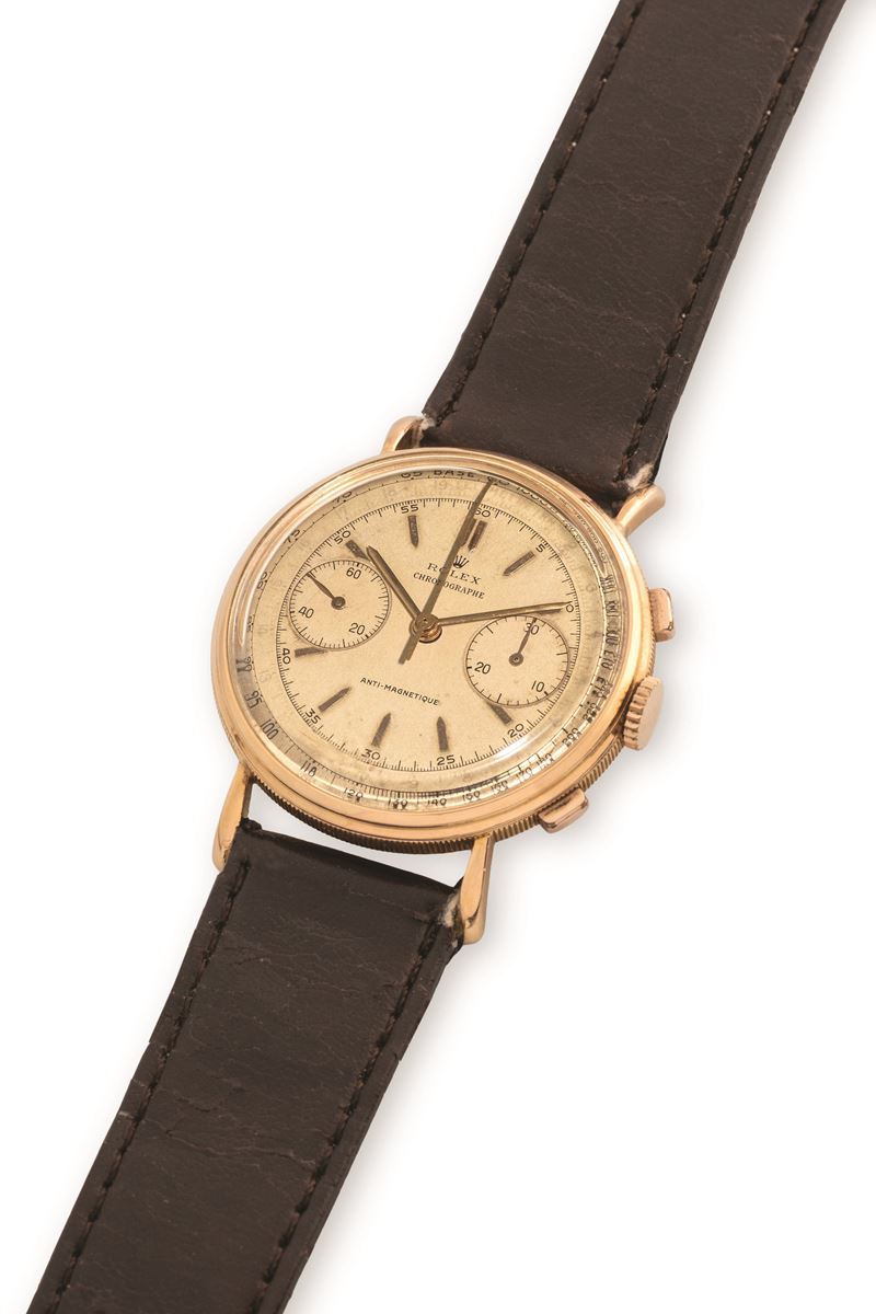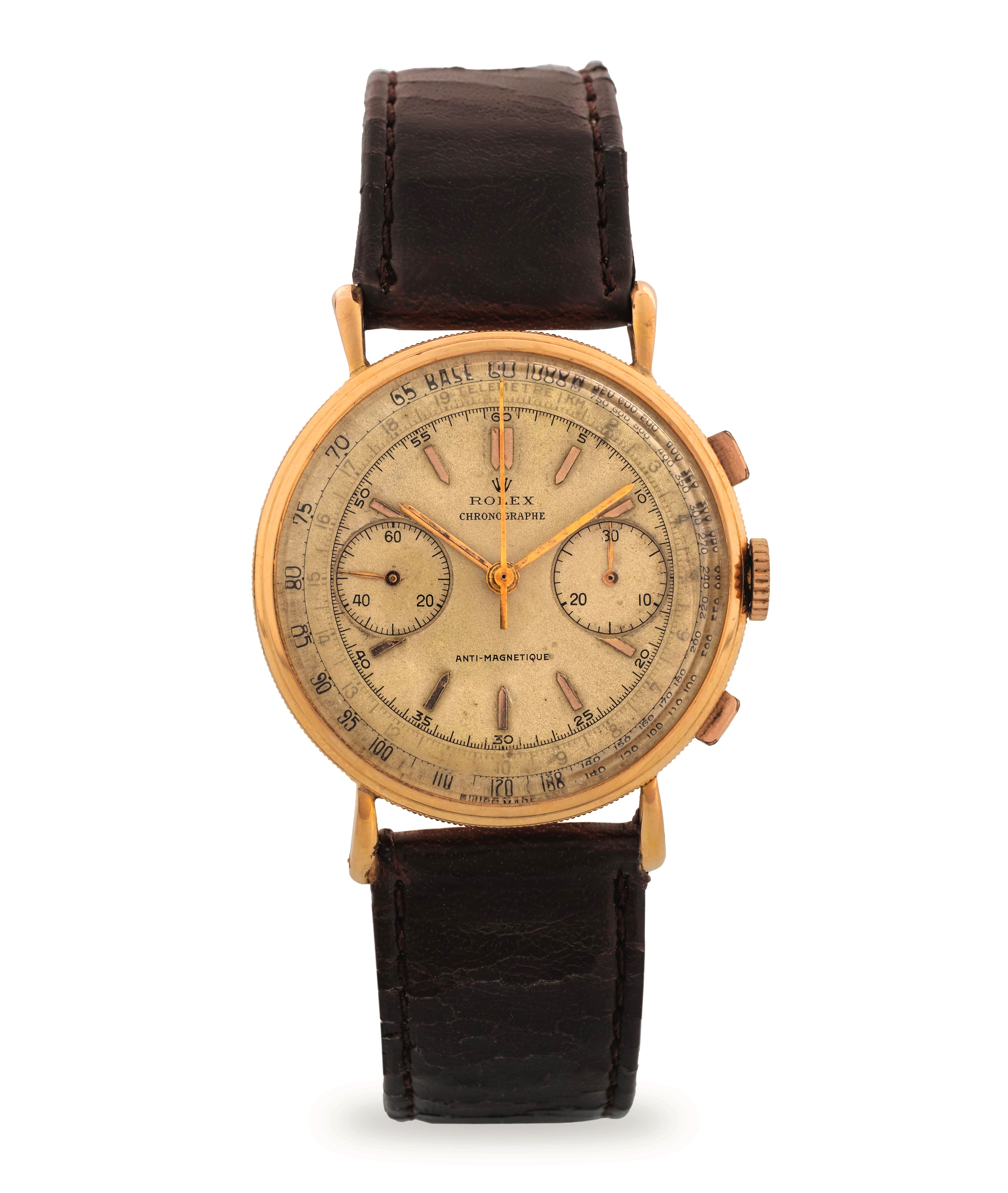 Chronograph ref 4062 in 18k pink gold, silvered dial with counters and tachometer scale, circa 1940
