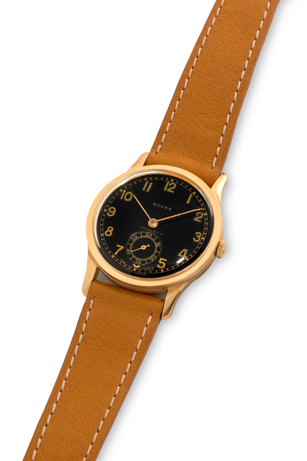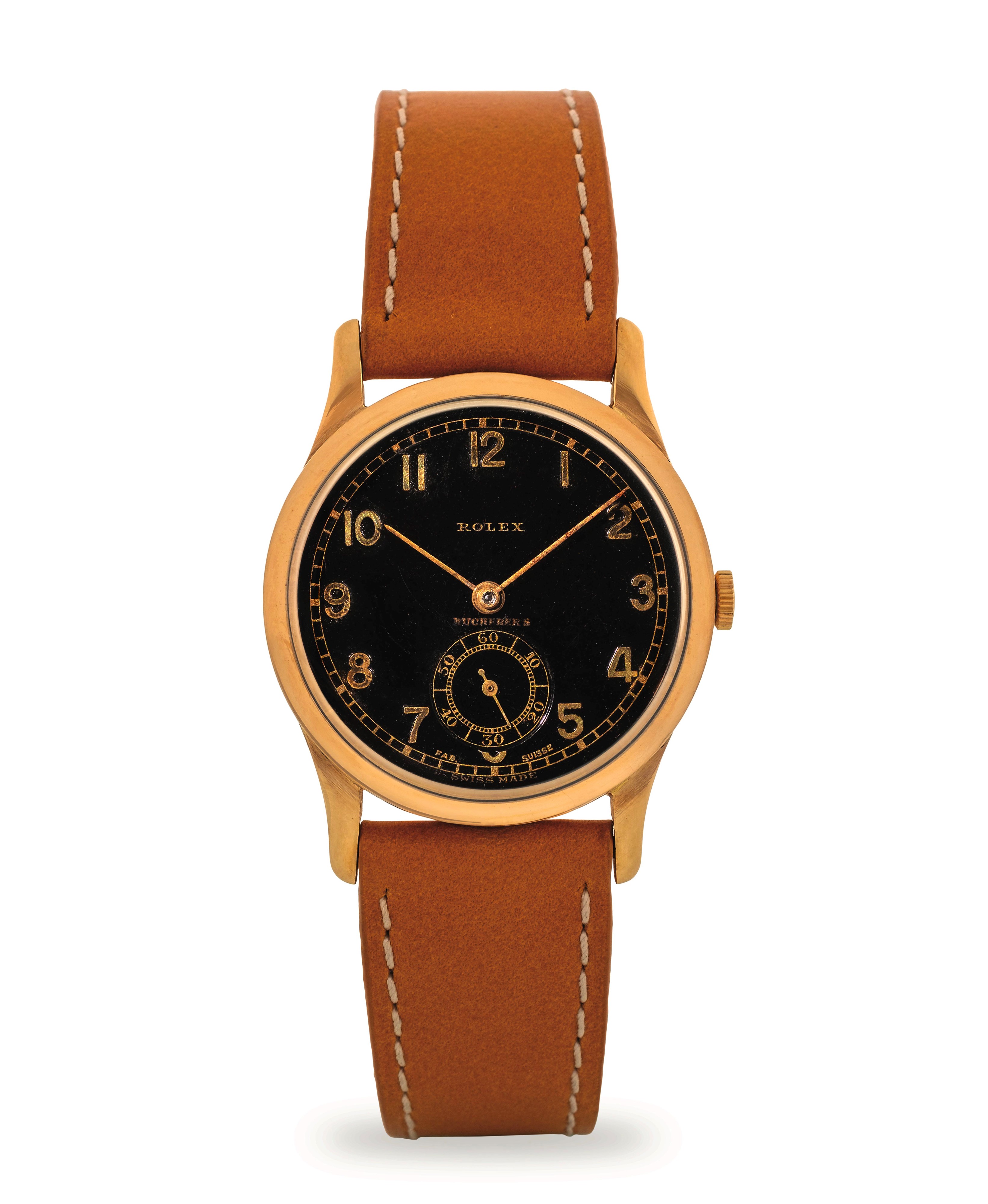 Chronometre coin case ref 2582 in 18k yellow gold, black dial with Arabic numerals personalised for Bucherer's, circa 1930