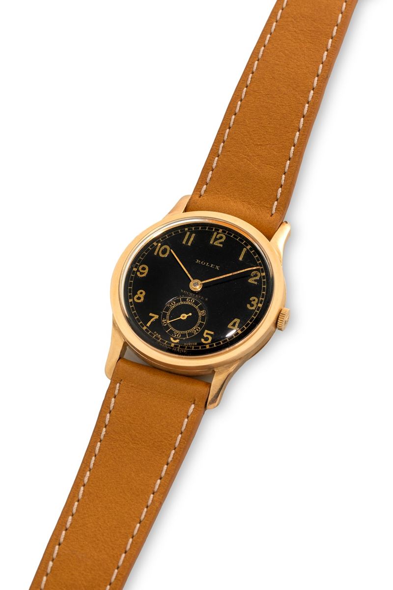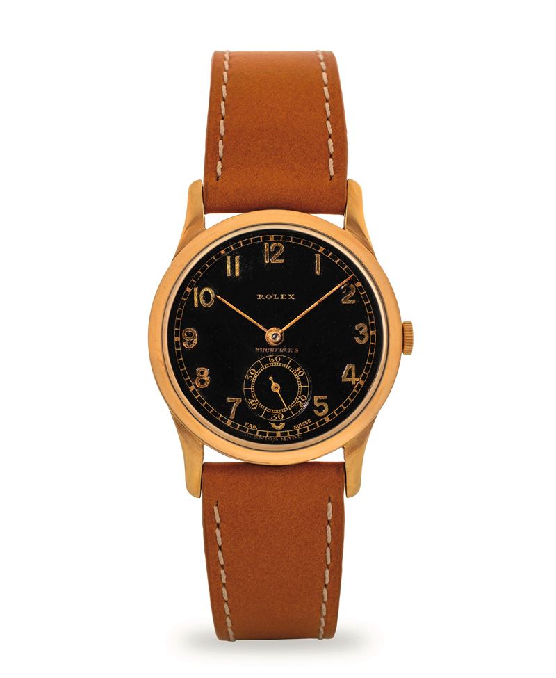 Chronometre coin case ref 2582 in 18k yellow gold, black dial with Arabic numerals personalised for Bucherer's, circa 193 [..]