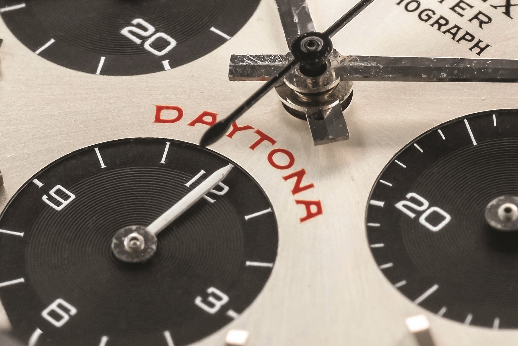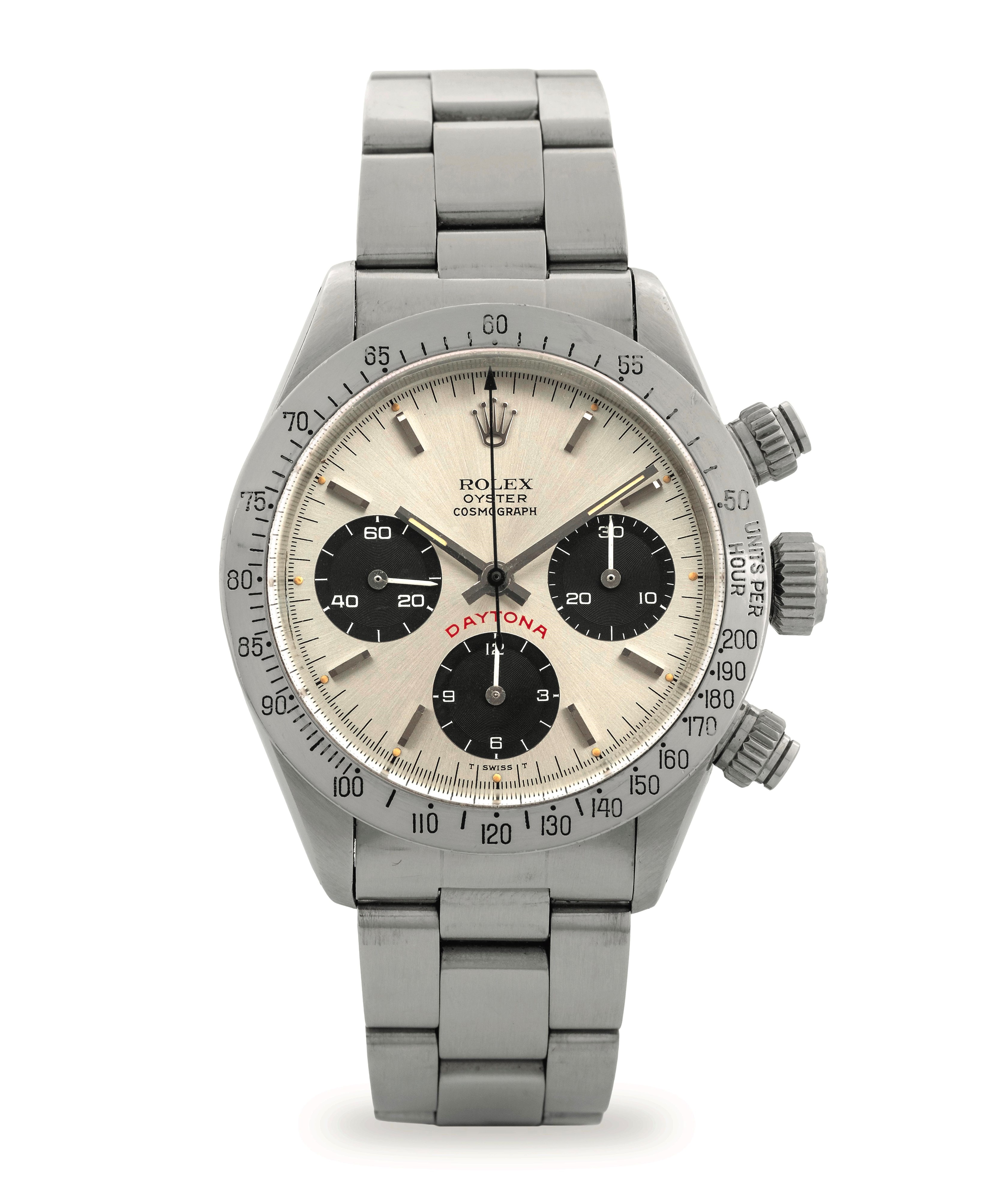 This exceptional reference 6265 displays all the features collectors seek in a Cosmograph Daytona. Preserved in outstanding condition, it features the coveted 'Big Red' Daytona dial. The dial is immaculate, with only minimal signs of wear, and all luminous hour markers are present and intact, perfectly matching the hands.