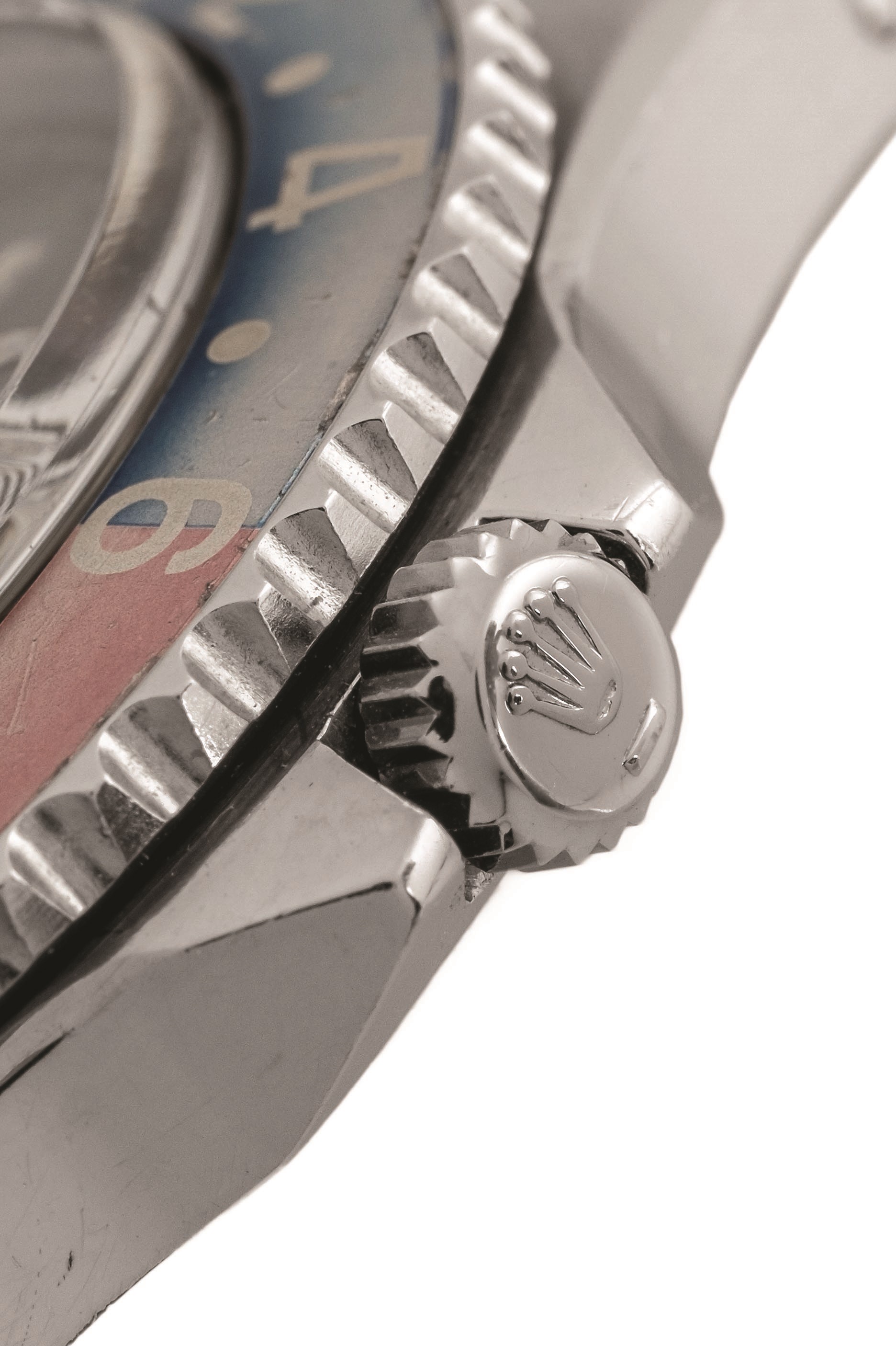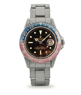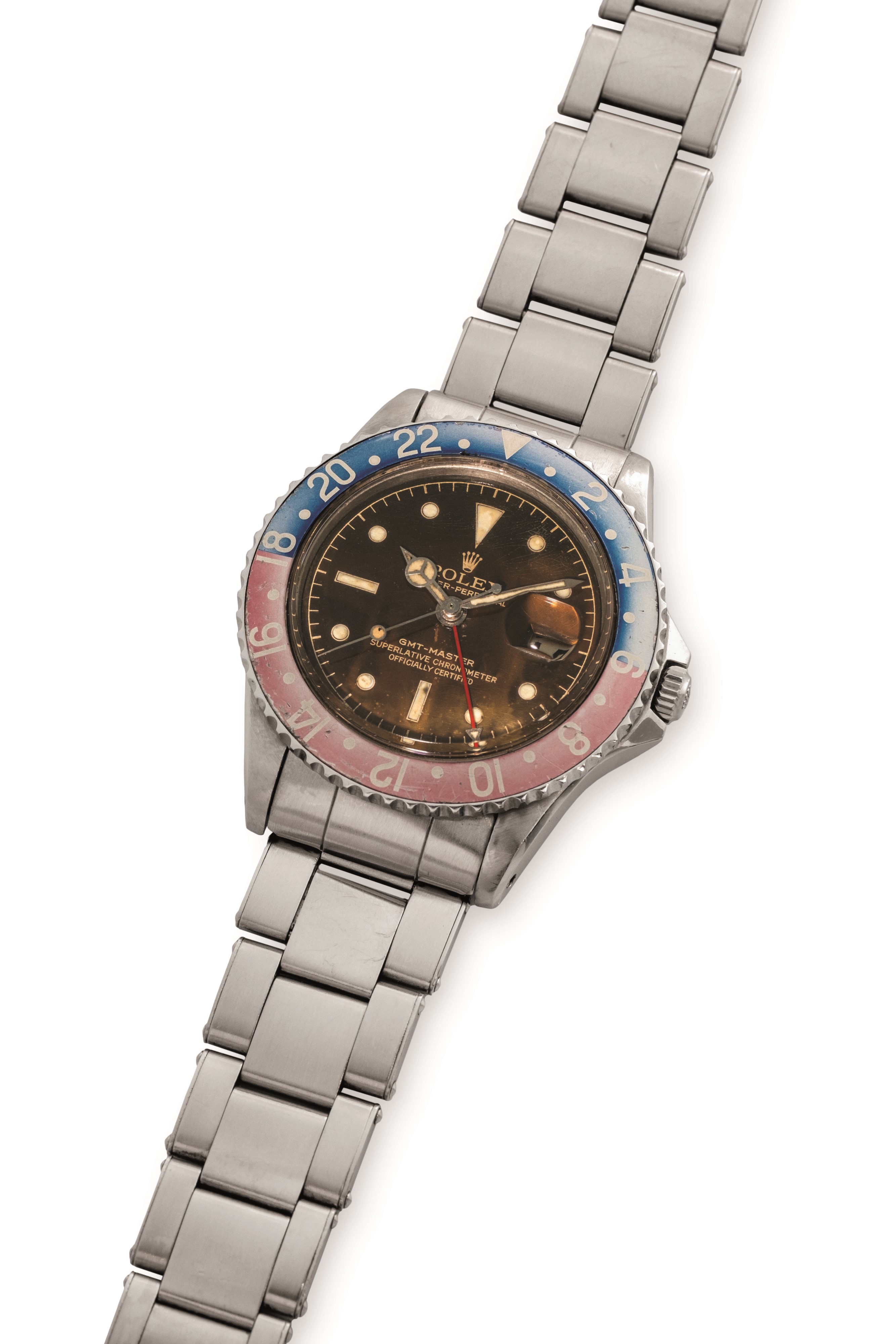 GMT Master “Cornino” ref 1675 steel, black gilt dial closed minute track turned brown, circa 1961