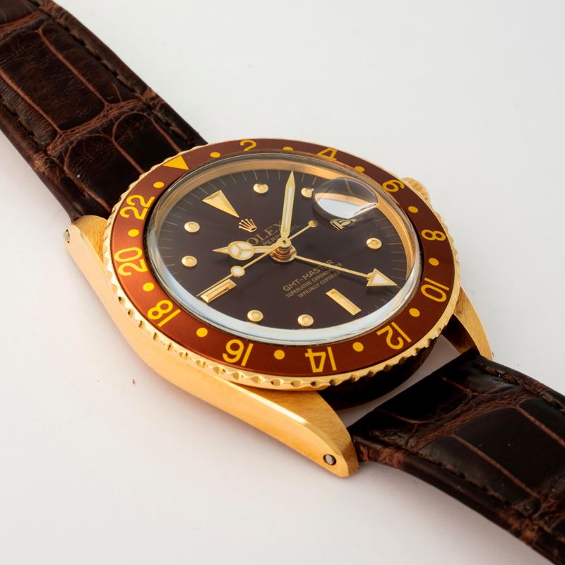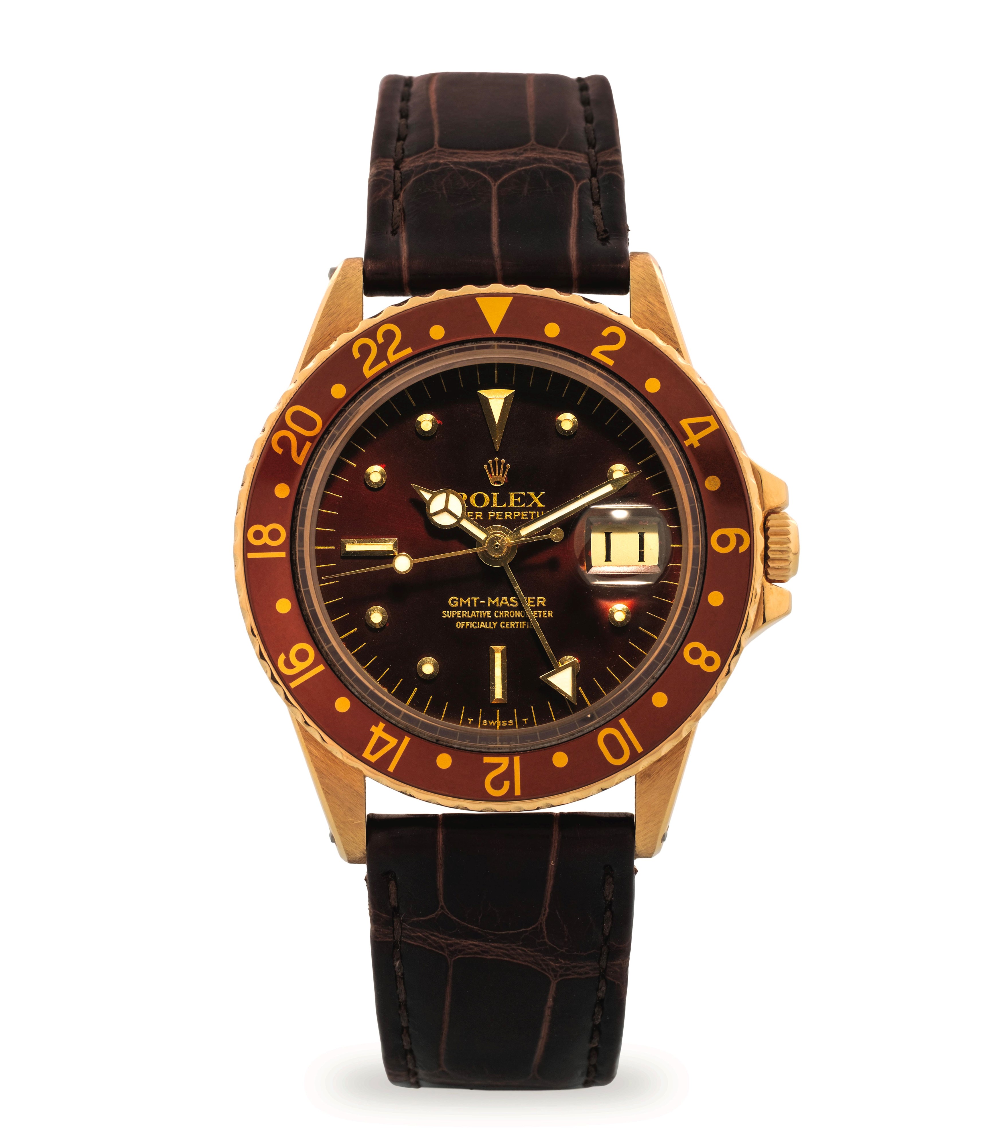 GMT Master ref 1675 in 18k yellow gold, sun-brown “Nipple” dial, circa 1977