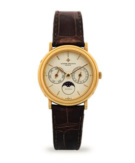 Patrimony Calenadar Moonphase ref 46009 in 18k yellow gold, silvered dial with moonphase calendar, with original guarantee, circa 1990
